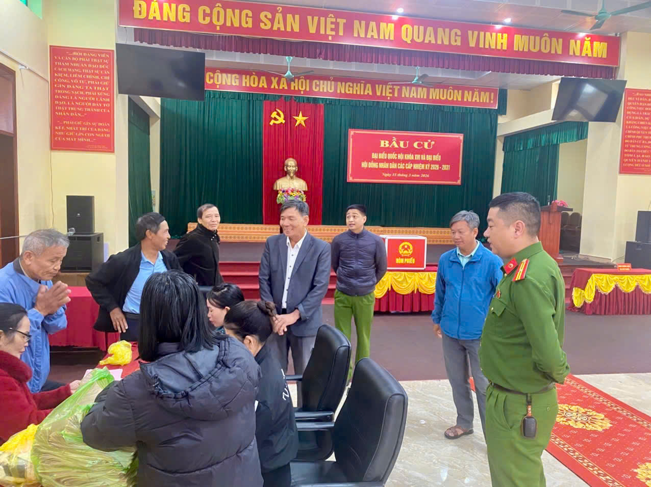 Các tổ bầu cử trong toàn xã cũng rà soát kỹ những khu vực có biến động cử tri, chuẩn bị hòm phiếu phụ để bảo đảm mọi công dân đủ điều kiện đều được thực hiện quyền bầu cử.