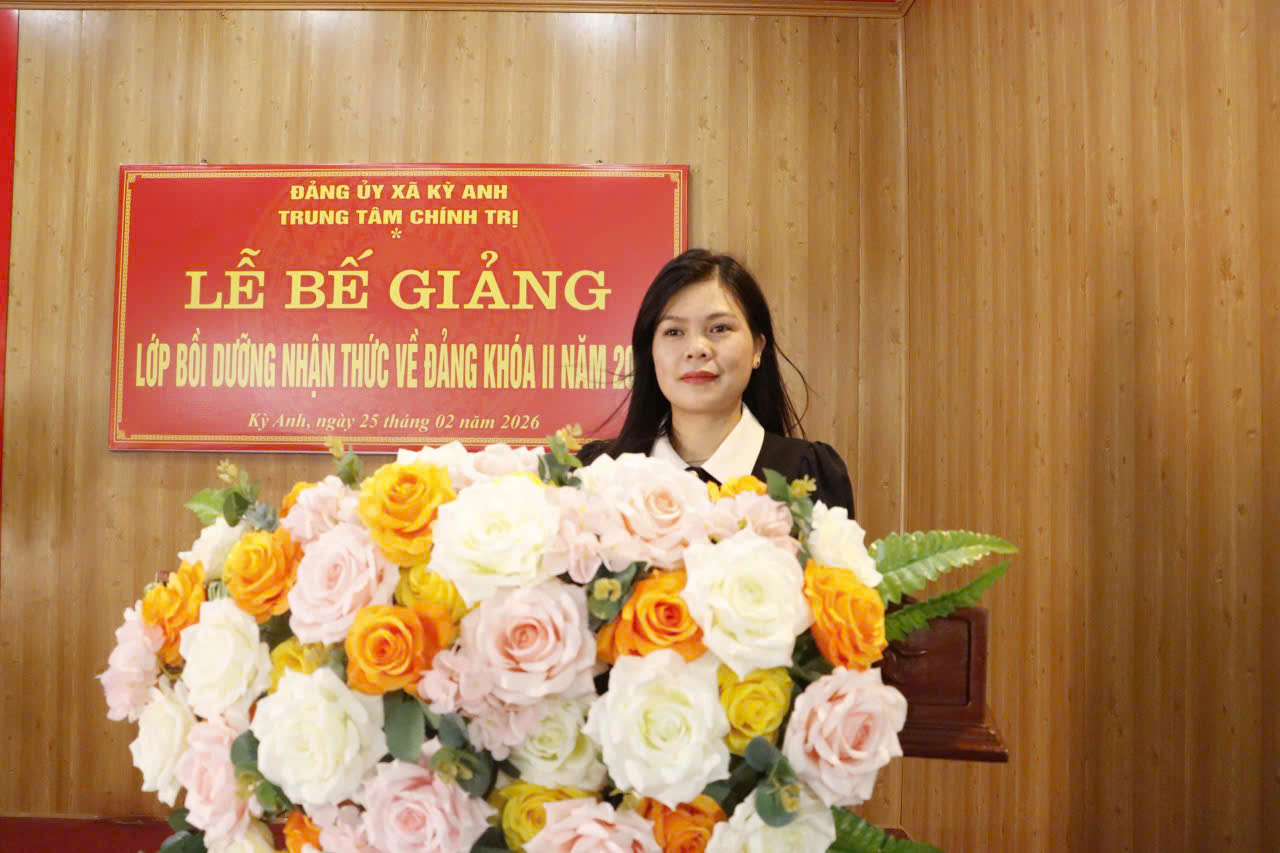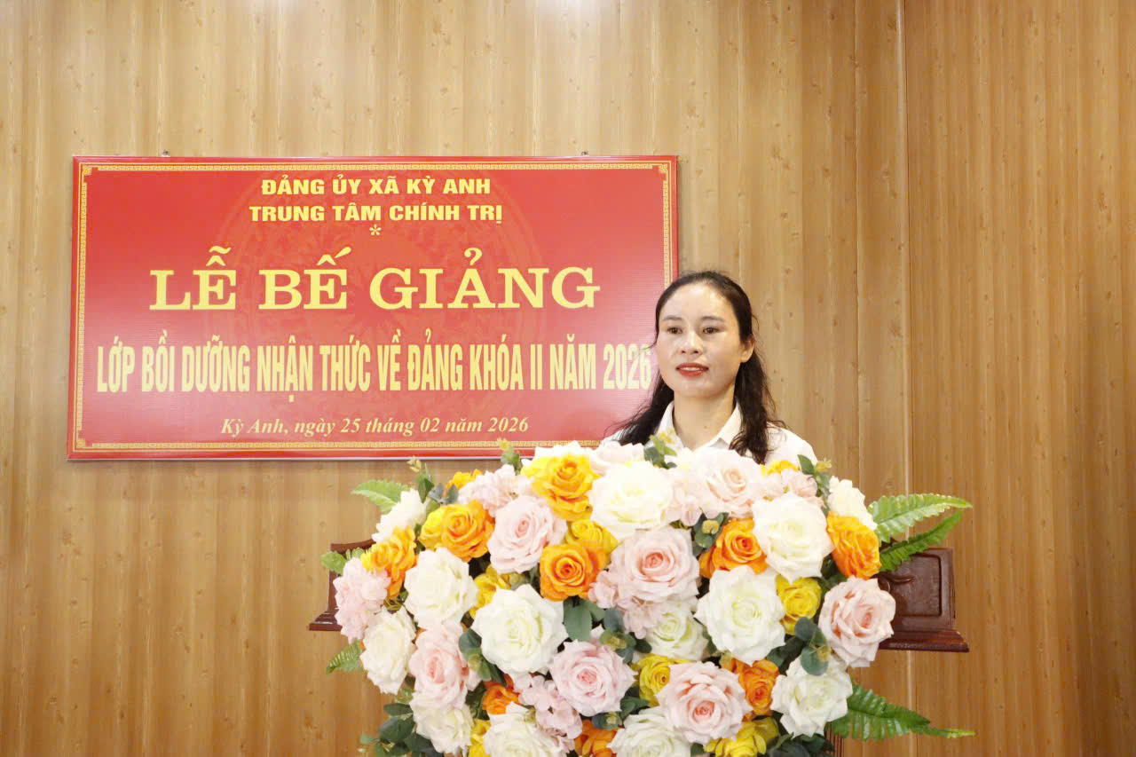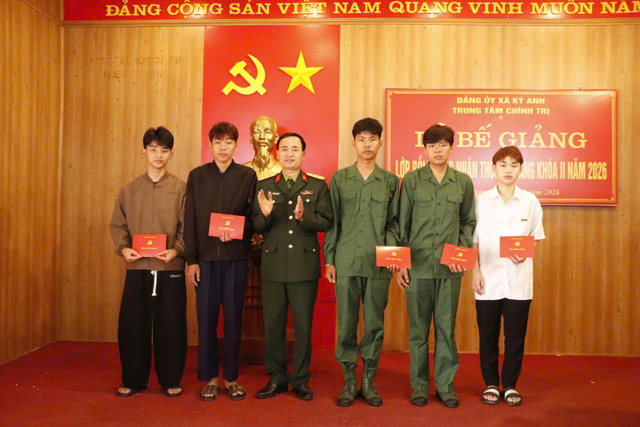 Sau một thời gian học tập, 44 học viên là các công dân chuẩn bị lên đường nhập ngũ năm 2026 và quần chúng ưu tú đến từ các xã: Kỳ Anh, Kỳ Xuân, Kỳ Khang, Kỳ Văn đã hoàn thành các nội dung của lớp bồi dưỡng nhận thức về Đảng với các chuyên đề theo chương trình bồi dưỡng.