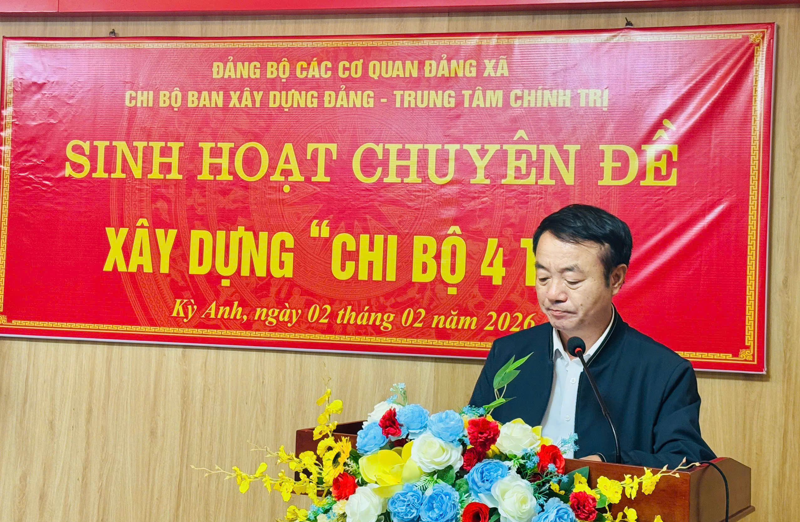 Nằm trong chuỗi hoạt động thiết thực chào mừng kỷ niệm 96 năm Ngày thành lập Đảng Cộng sản Việt Nam (03/02/1930 - 02/03/2026), sáng ngày 02/02/2026, Chi bộ Ban Xây dựng Đảng - Trung tâm Chính trị tổ chức sinh hoạt chuyên đề với chủ đề: “Xây dựng Chi bộ 4 tốt" Nâng cao năng lực chiến đấu của tổ chức cơ sở Đảng.