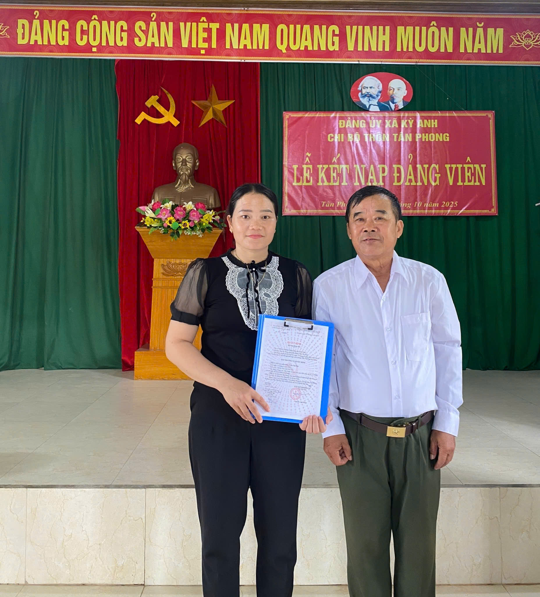 Sáng ngày 16/10/2025, Chi bộ thôn Tân Phong đã long trọng tổ chức Lễ kết nạp Đảng viên mới cho quần chúng ưu tú Trần Thị Hợp.