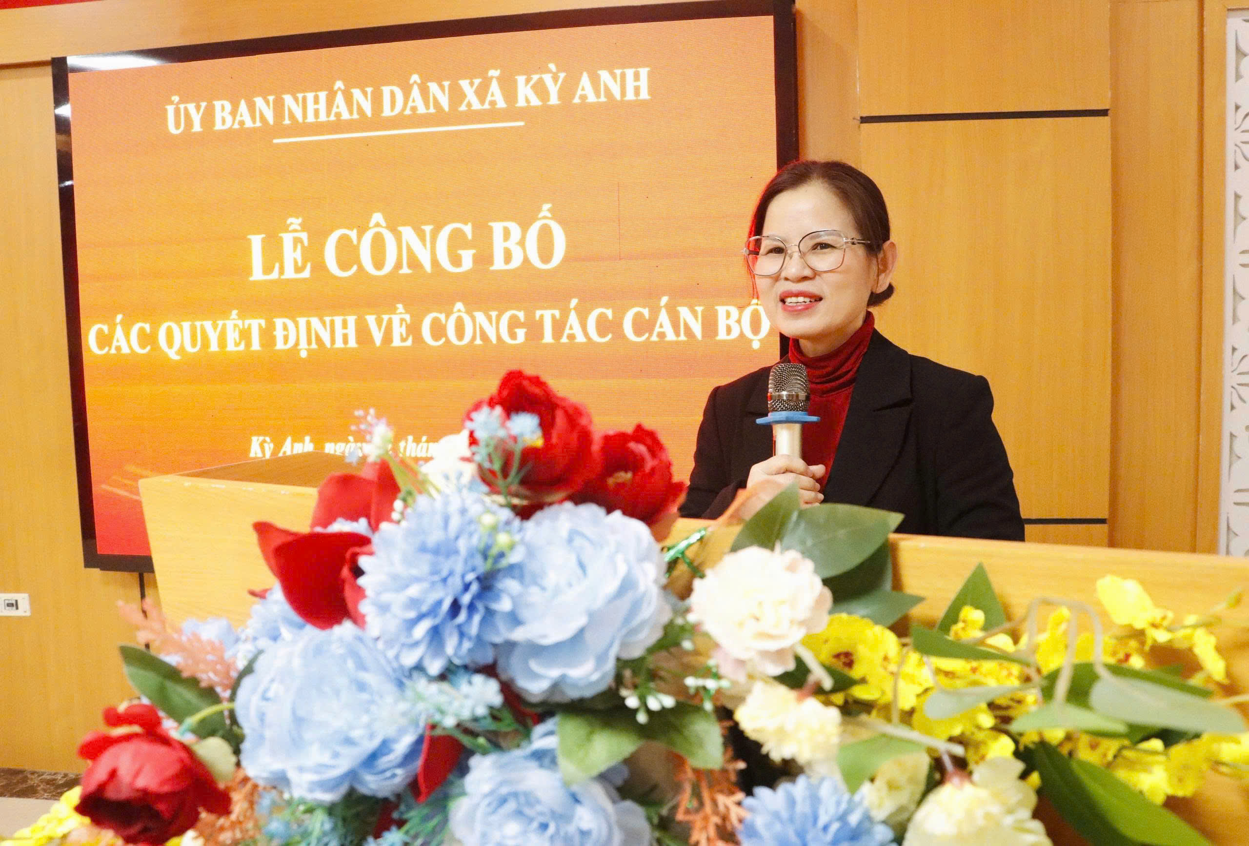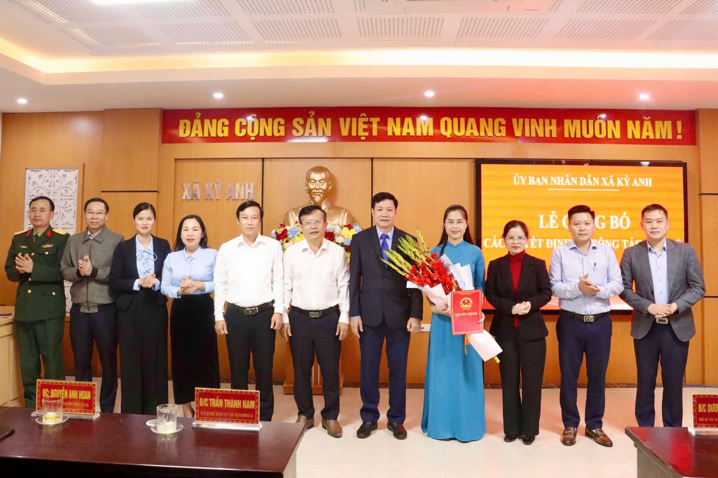 Theo đó, buổi lễ đã công bố Quyết định điều động, bổ nhiệm bà Nguyễn Thị Hường, Chánh Văn phòng HĐND - UBND xã giữ chức vụ Trưởng phòng Kinh tế xã Kỳ Anh. Thời hạn bổ nhiệm 05 năm, kể từ ngày 10/03/2026.