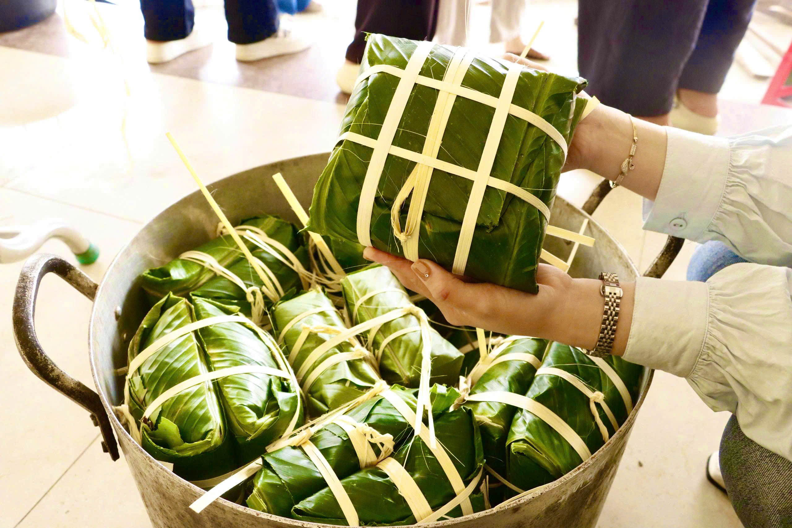 Từng chiếc bánh chưng xanh không chỉ gói trọn nét đẹp văn hóa truyền thống của dân tộc, mà còn gửi gắm những lời chúc tốt đẹp cho một mùa Xuân mới "An toàn - Lành mạnh - Tiết kiệm - Nghĩa tình".