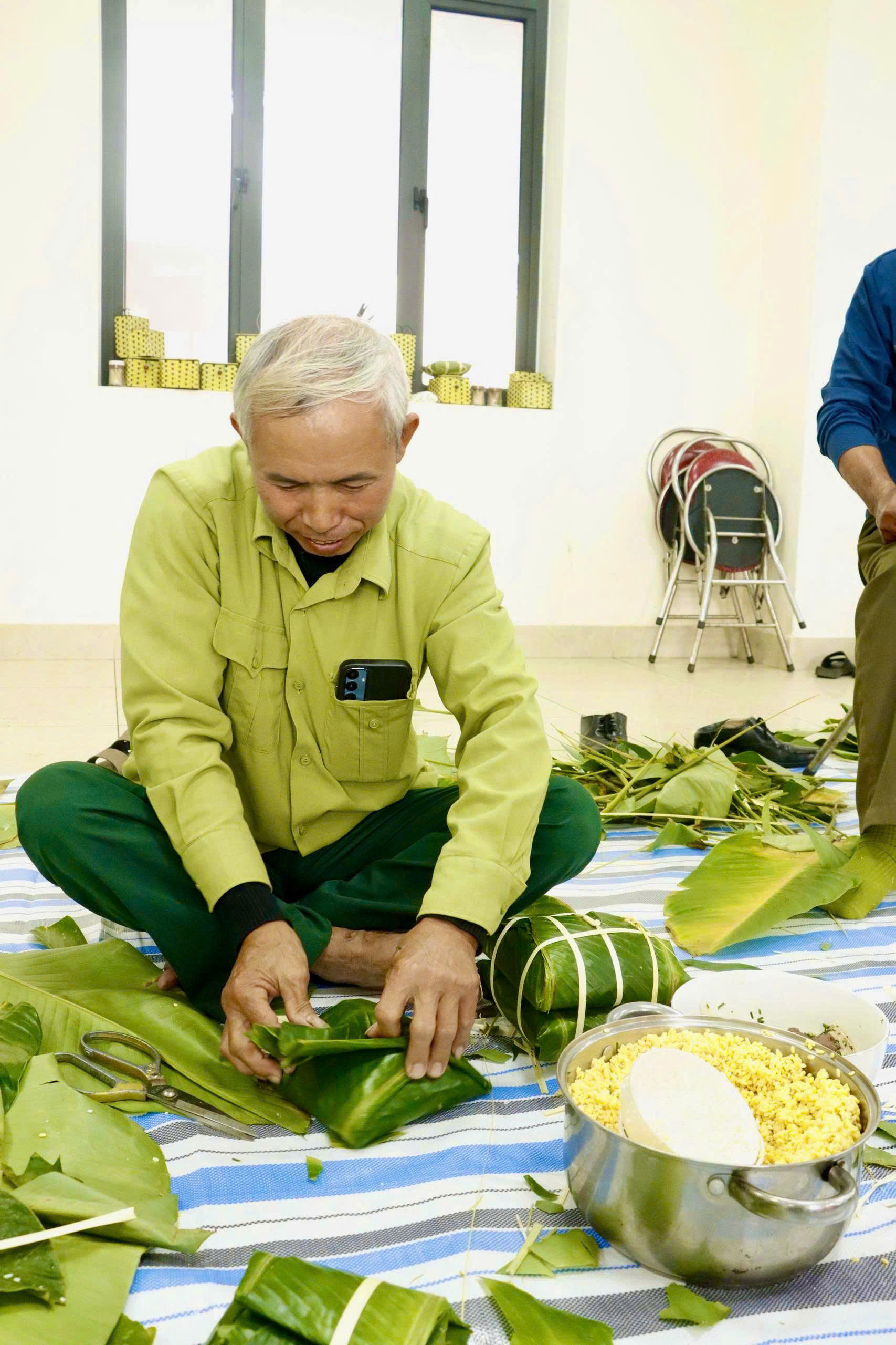 Với tinh thần tương thân tương ái, hơn 300 chiếc bánh chưng xanh vuông vắn đã hoàn thành trong sự tỉ mỉ, chứa đựng tâm tình và sự sẻ chia của đội ngũ cán bộ xã nhà.
