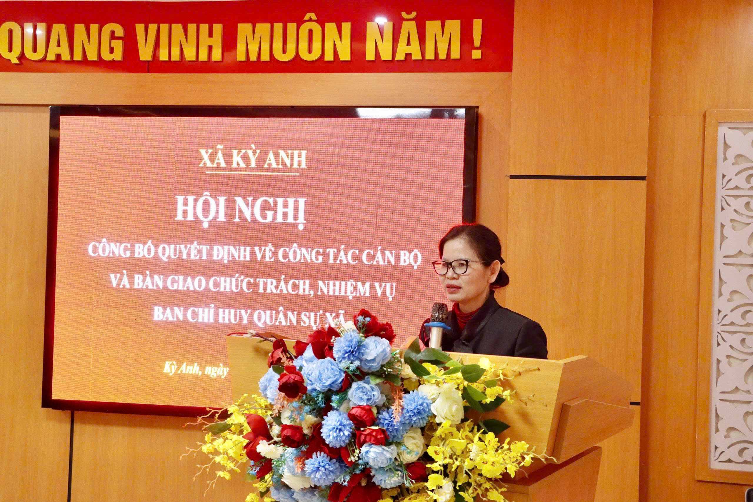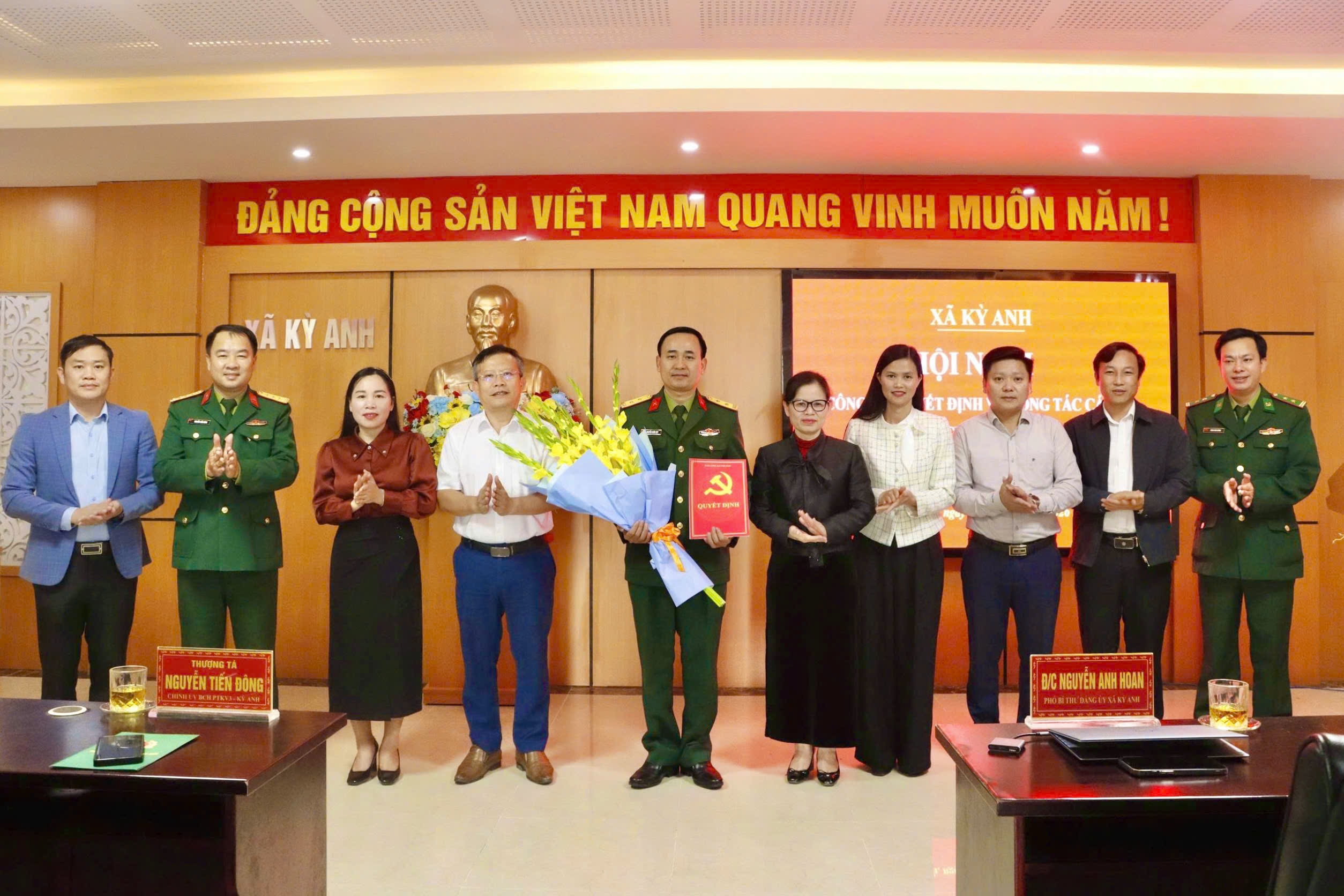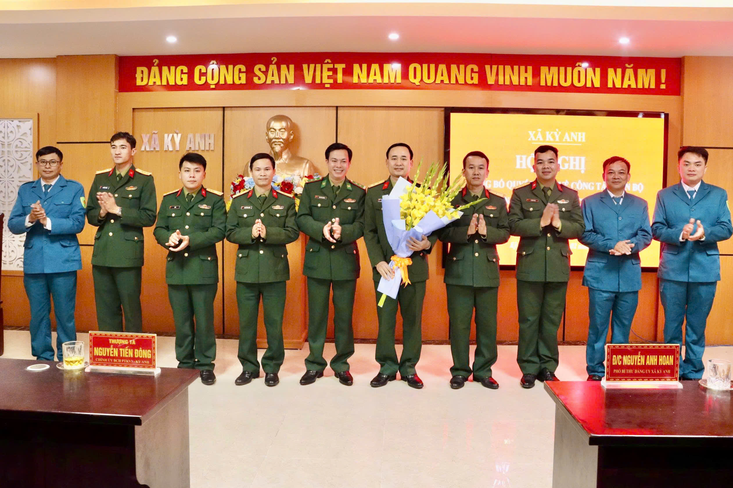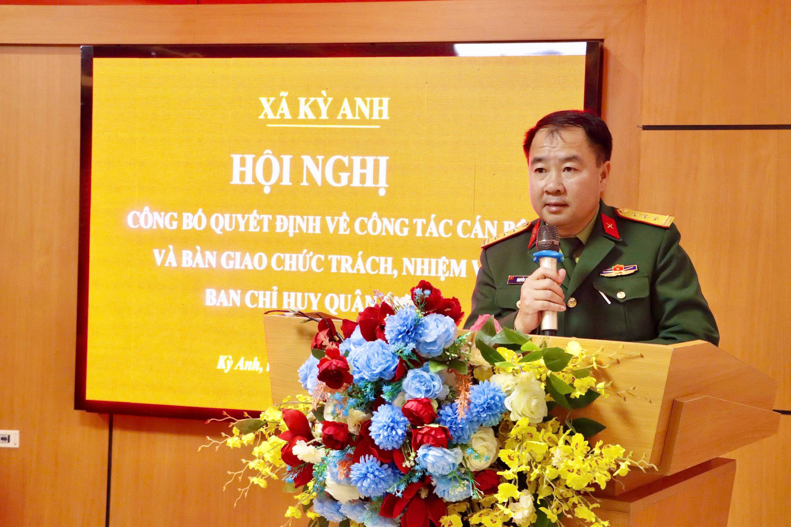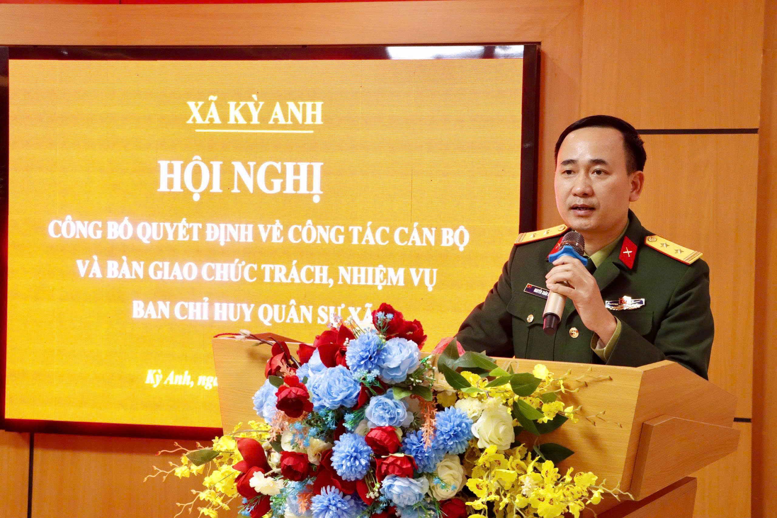 Phát biểu giao nhiệm vụ, đồng chí Thượng tá Nguyễn Tiến Đông, Chính ủy, Ban Chỉ huy Phòng thủ khu vực 3-Kỳ Anh đề nghị đồng chí Chỉ huy trưởng Ban CHQS xã phát huy năng lực, kinh nghiệm công tác; nhanh chóng nắm bắt tình hình địa bàn, ổn định tổ chức, giữ vững đoàn kết nội bộ.