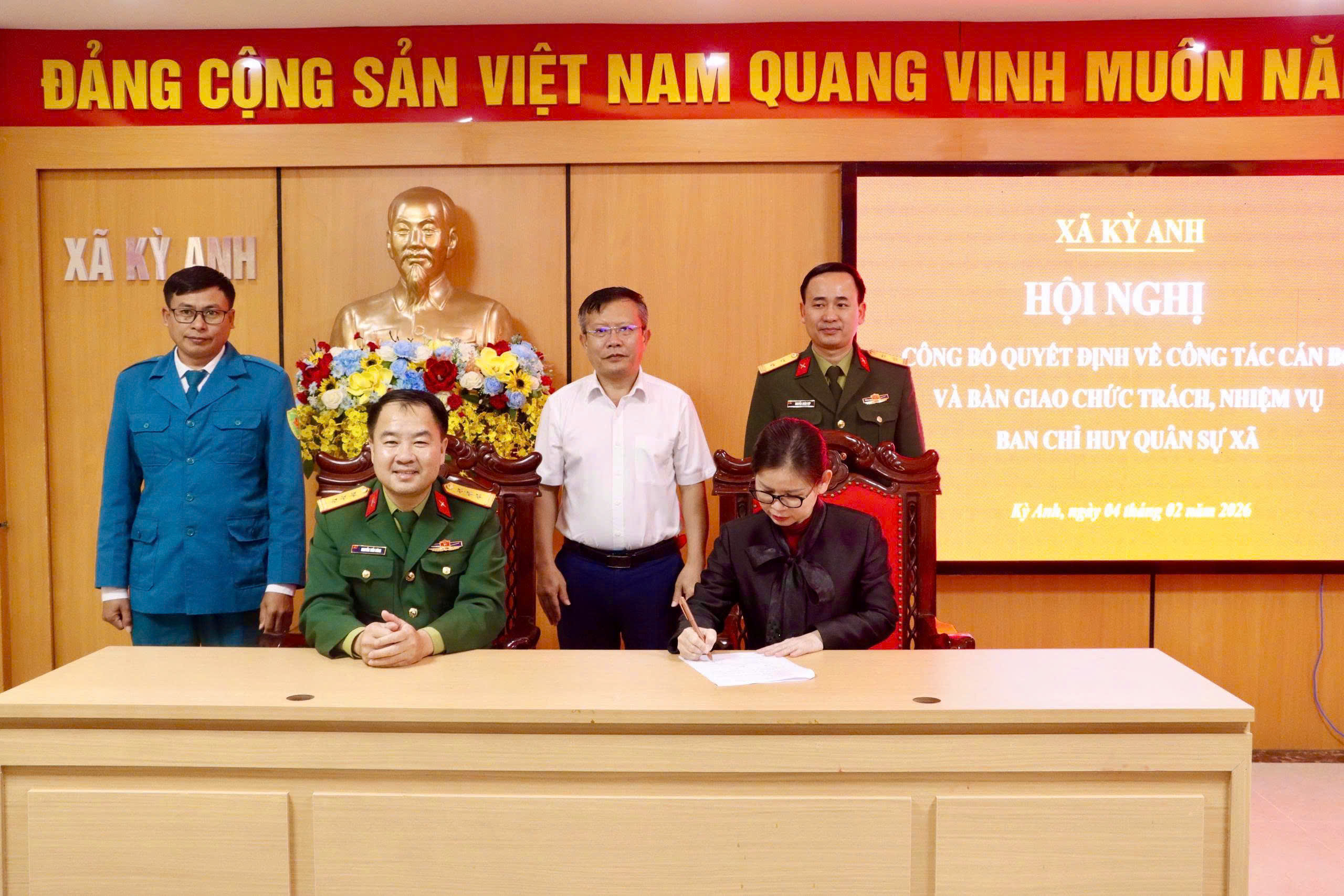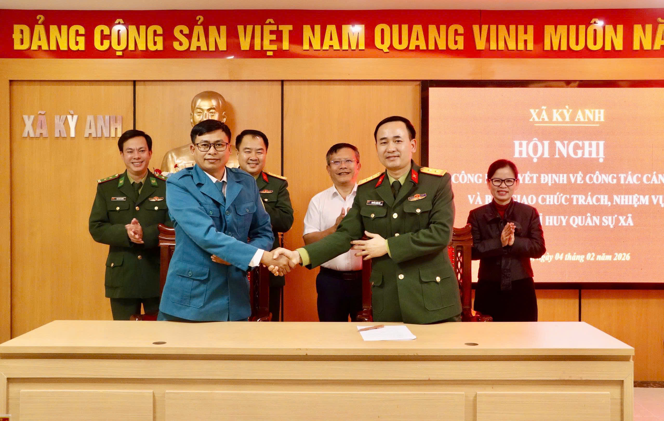 Đồng thời, hội nghị đã thông qua biên bản bàn giao chức trách, nhiệm vụ. Nội dung bàn giao bao gồm toàn bộ hệ thống tài liệu, hồ sơ sổ sách, các mặt công tác quân sự và quốc phòng địa phương. Quá trình bàn giao diễn ra chặt chẽ, đúng quy định, đảm bảo tính liên tục và thông suốt trong công tác lãnh đạo, chỉ đạo tại đơn vị.