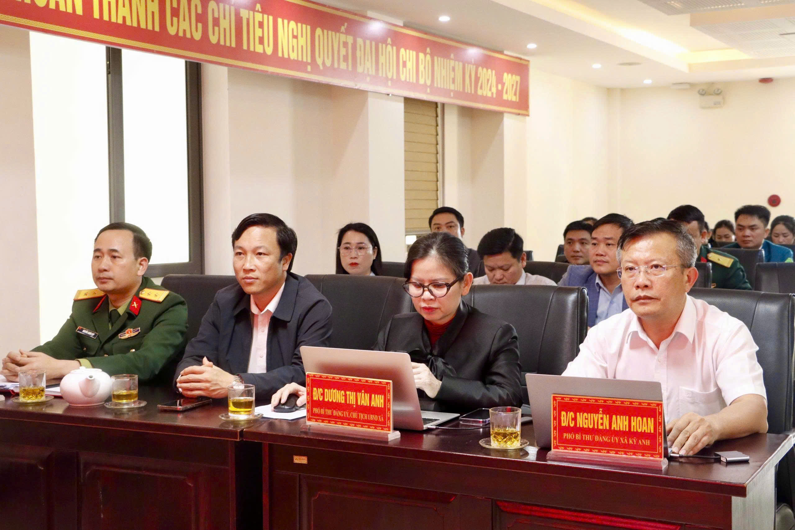 Về phía lãnh đạo địa phương có đồng chí Nguyễn Anh Hoan, Phó Bí thư Thường trực Đảng ủy; đồng chí Dương Thị Vân Anh - Phó Bí thư Đảng ủy, Chủ tịch UBND xã cùng các đồng chí Ủy viên BTV Đảng ủy; đại diện Đồn Biên phòng Kỳ Khang, Công an xã Kỳ Anh, đại diện lãnh đạo các ban ngành, đoàn thể cùng cán bộ, chiến sĩ Ban CHQS sự xã và 30 Thôn đội trưởng.