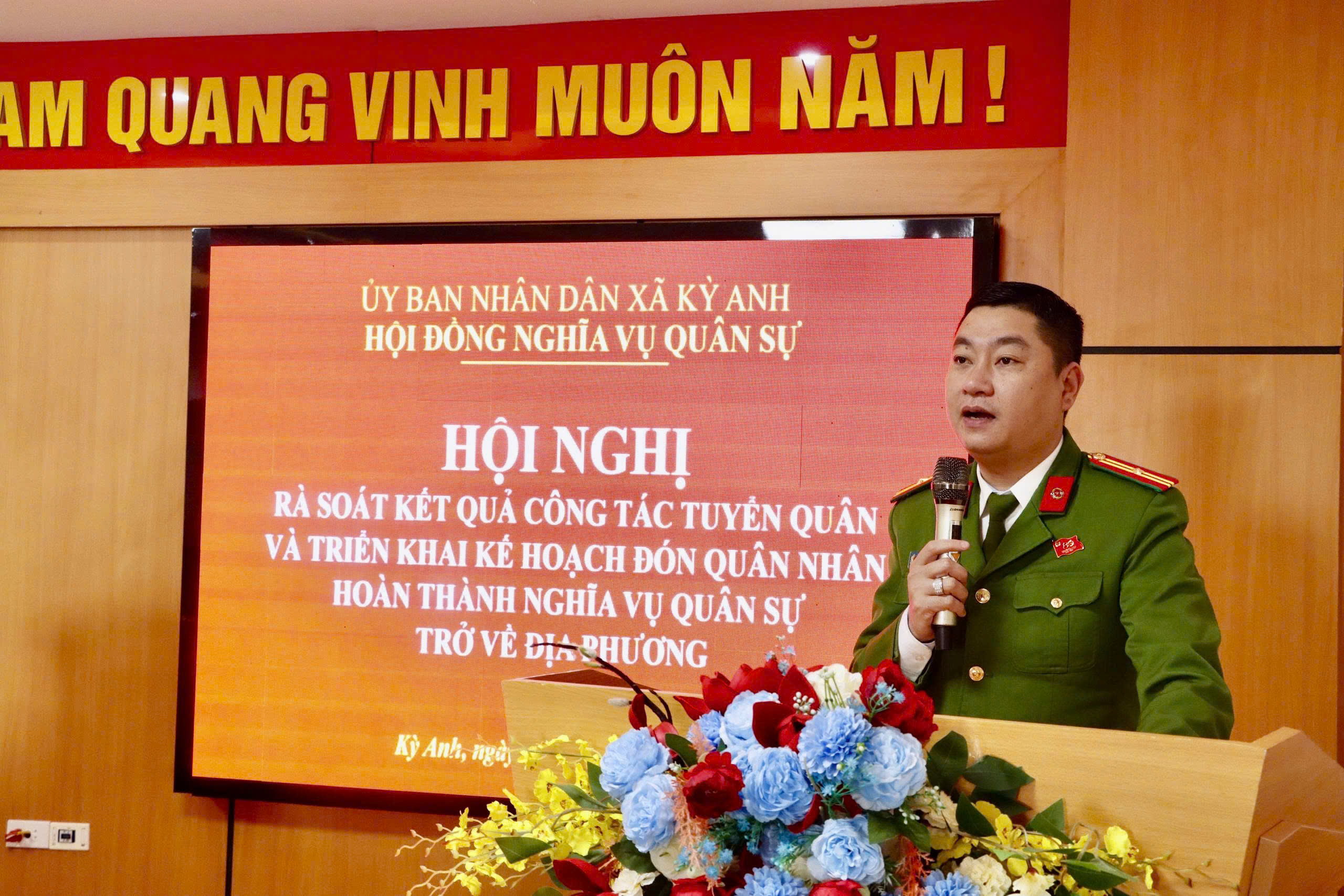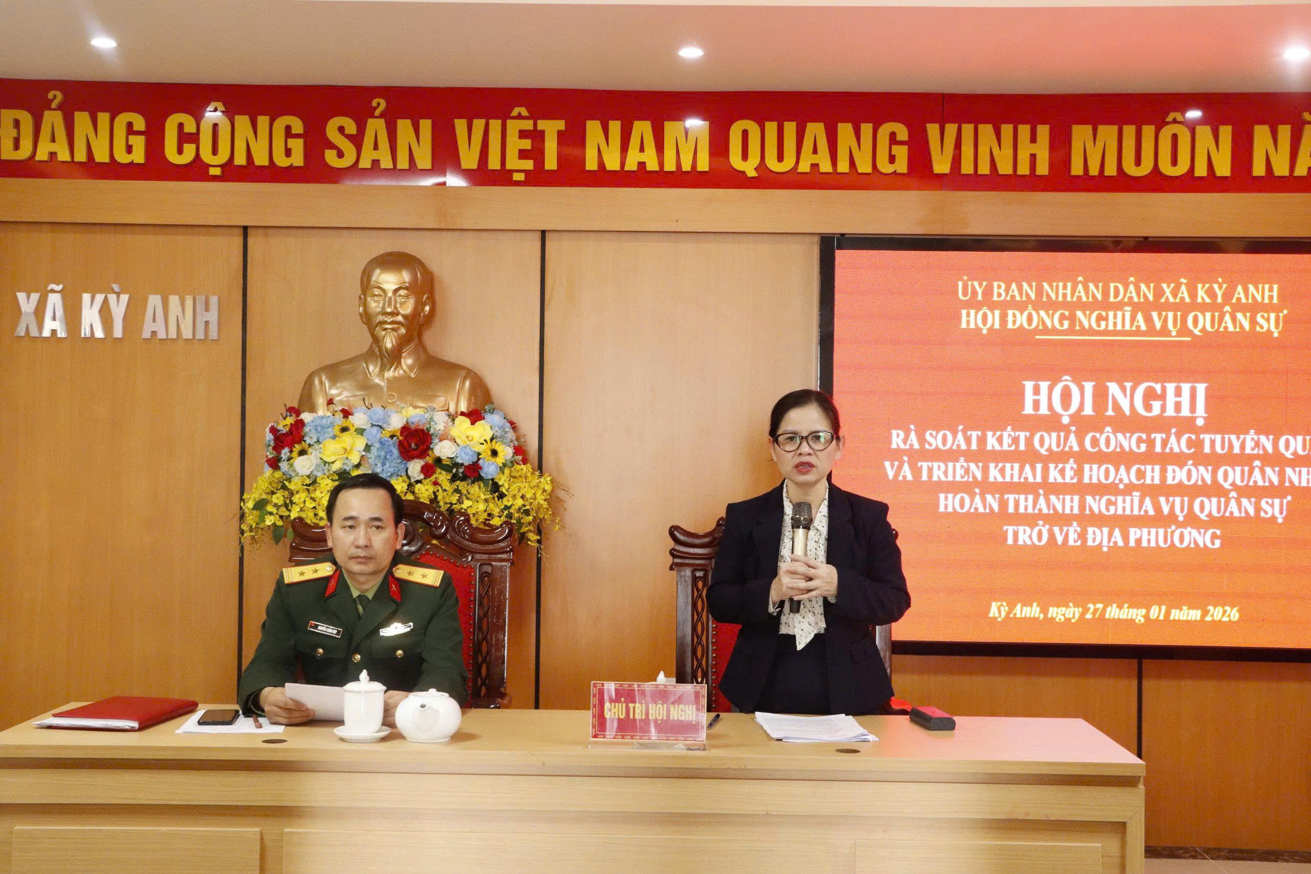 Phát biểu chỉ đạo tại hội nghị, đồng chí Dương Thị Vân Anh - Chủ tịch UBND, Chủ tịch Hội đồng NVQS xã nhấn mạnh các nhiệm vụ trọng tâm. Trong đó, cần tiếp tục đẩy mạnh công tác tuyên truyền, tổ chức thăm hỏi, động viên kịp thời 50 gia đình có con em trúng tuyển để các tân binh vững vàng tư tưởng trước ngày lên đường. Ban CHQS xã hoàn thiện hồ sơ, phối hợp chặt chẽ với Ban cán sự các thôn để quản lý tốt di biến động của công dân nhập ngũ. Công an xã phối hợp với Quân sự tăng cường tuần tra, đảm bảo an ninh trật tự trên địa bàn, đặc biệt là trong thời gian chuẩn bị lễ giao nhận quân. Tổ chức lễ đón quân nhân xuất ngũ trang trọng, kết hợp lồng ghép các hoạt động tặng quà và phát động phong trào xã hội hóa nhằm thực hiện tốt chính sách hậu phương quân đội.