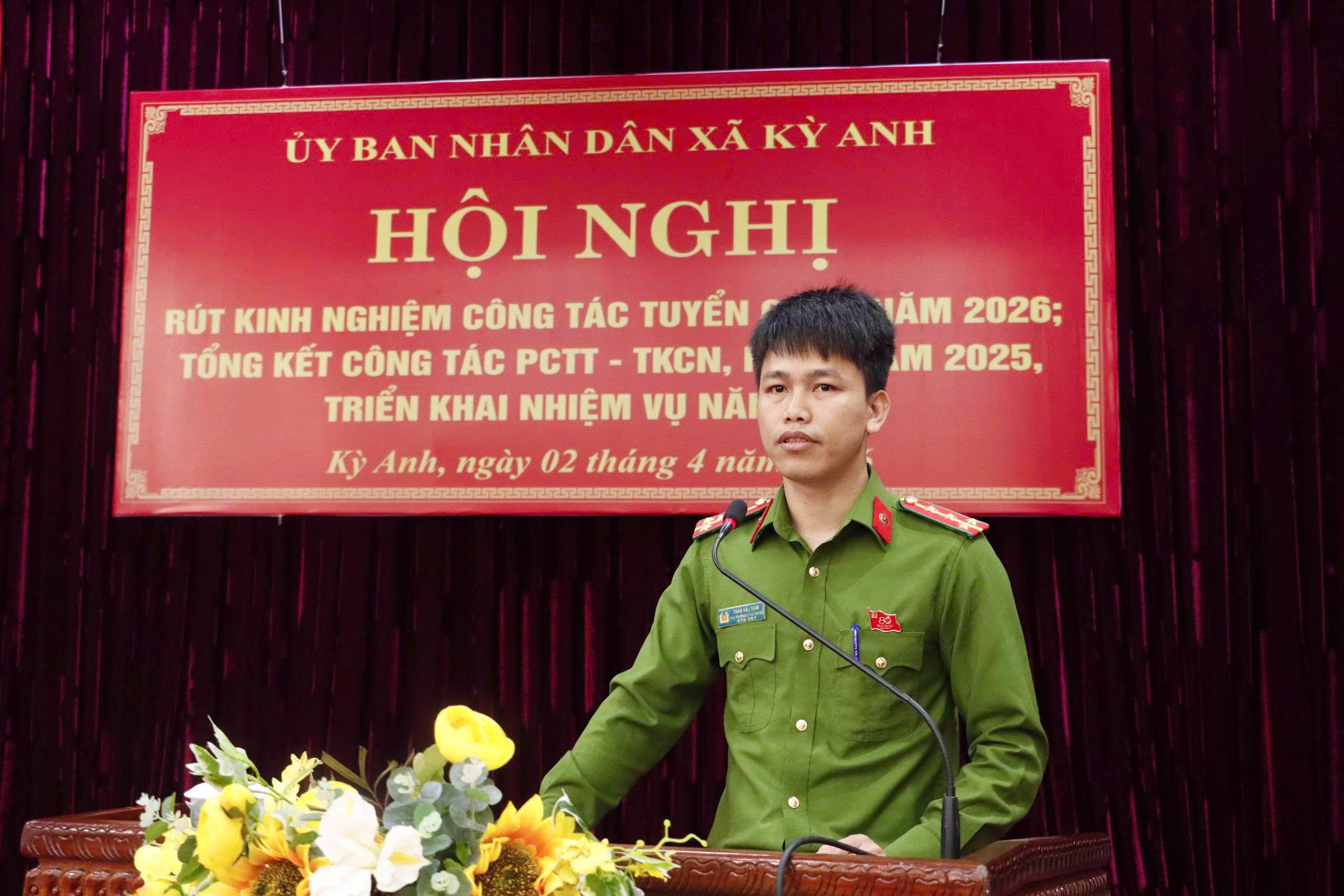Đ.c Đại úy Trần Văn Nam - Phó Trưởng Công an xã Kỳ Anh tham luận tại hội nghị.