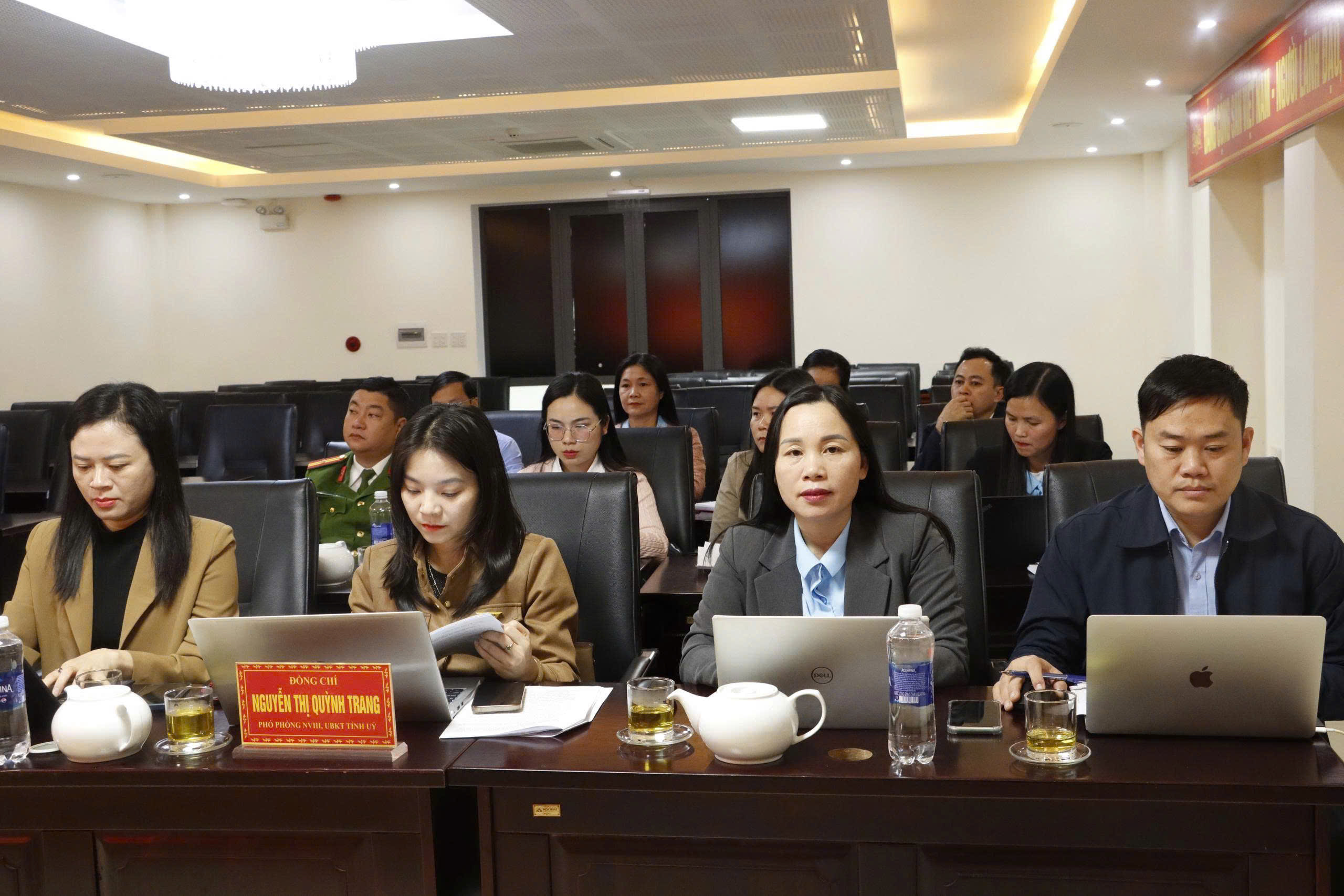 Về tham dự có các đồng chí Lê Thị Thu Lan - Trưởng phòng Tổ chức cán bộ, BTC Tỉnh; Nguyễn Thị Quỳnh Trang - Phó phòng Nội vụ III, UBKT Tỉnh ủy