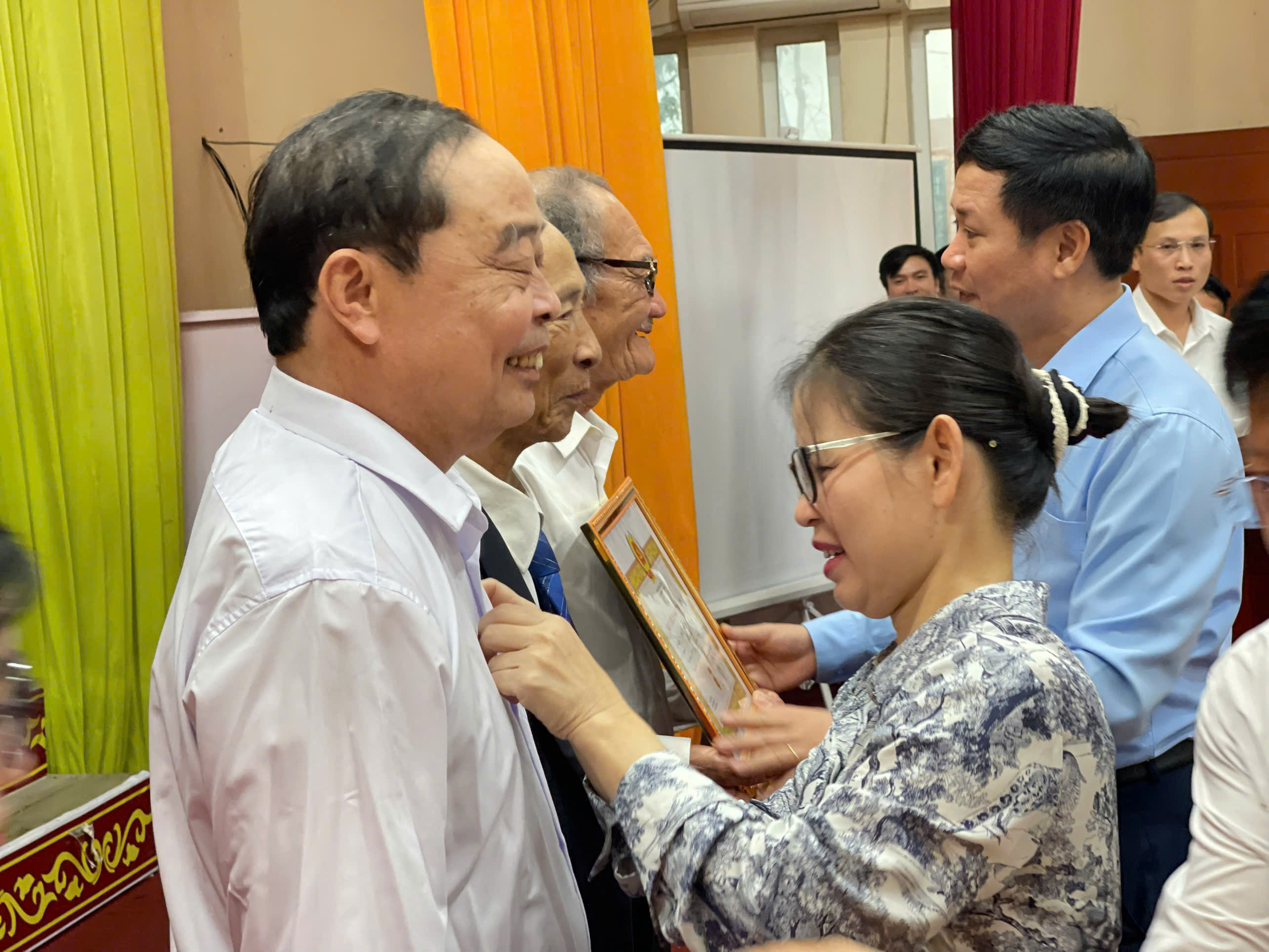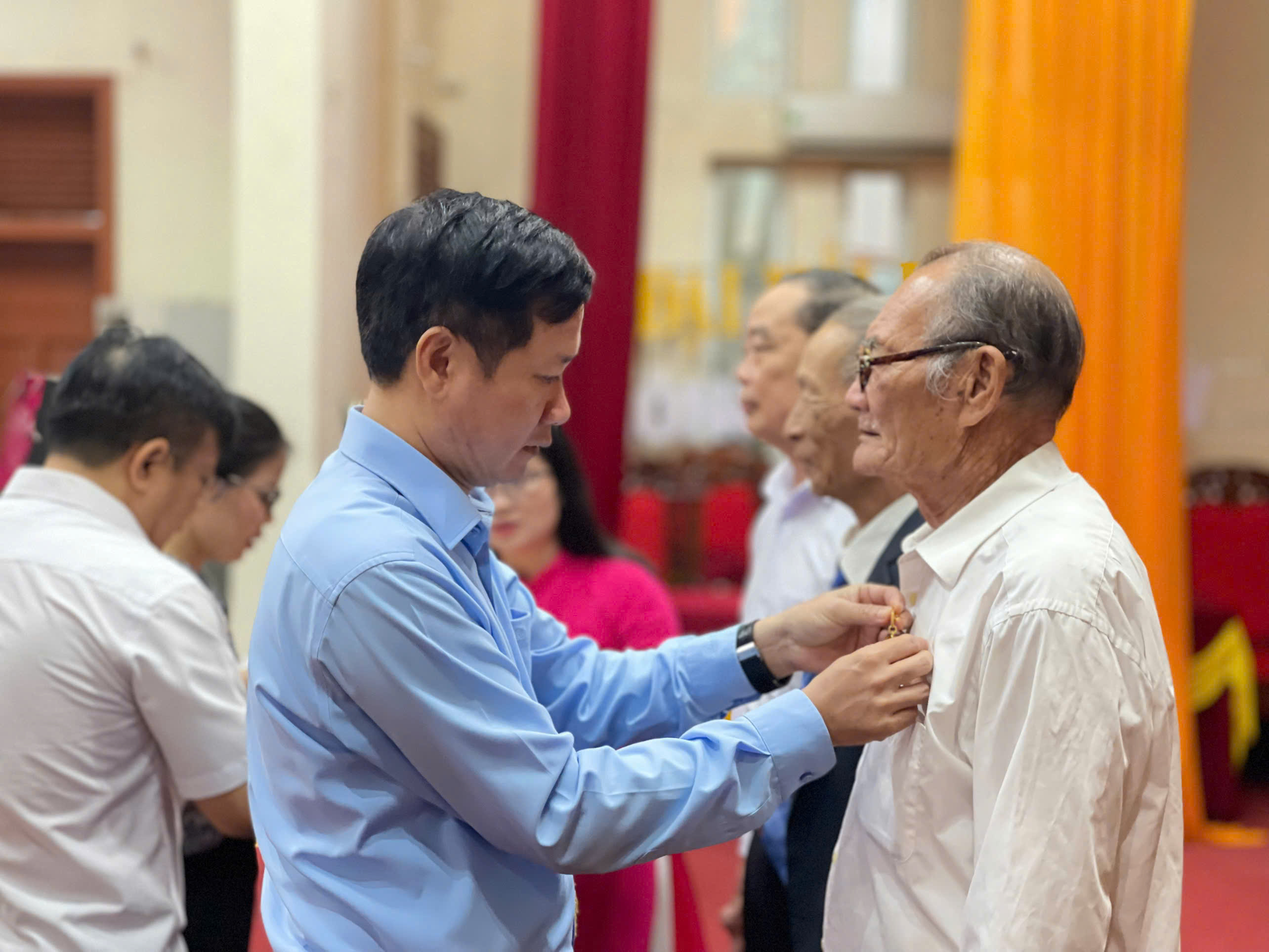 Thường trực Đảng uỷ trao tặng huy hiệu 55 năm và 50 năm tuổi Đảng cho các đảng viên
