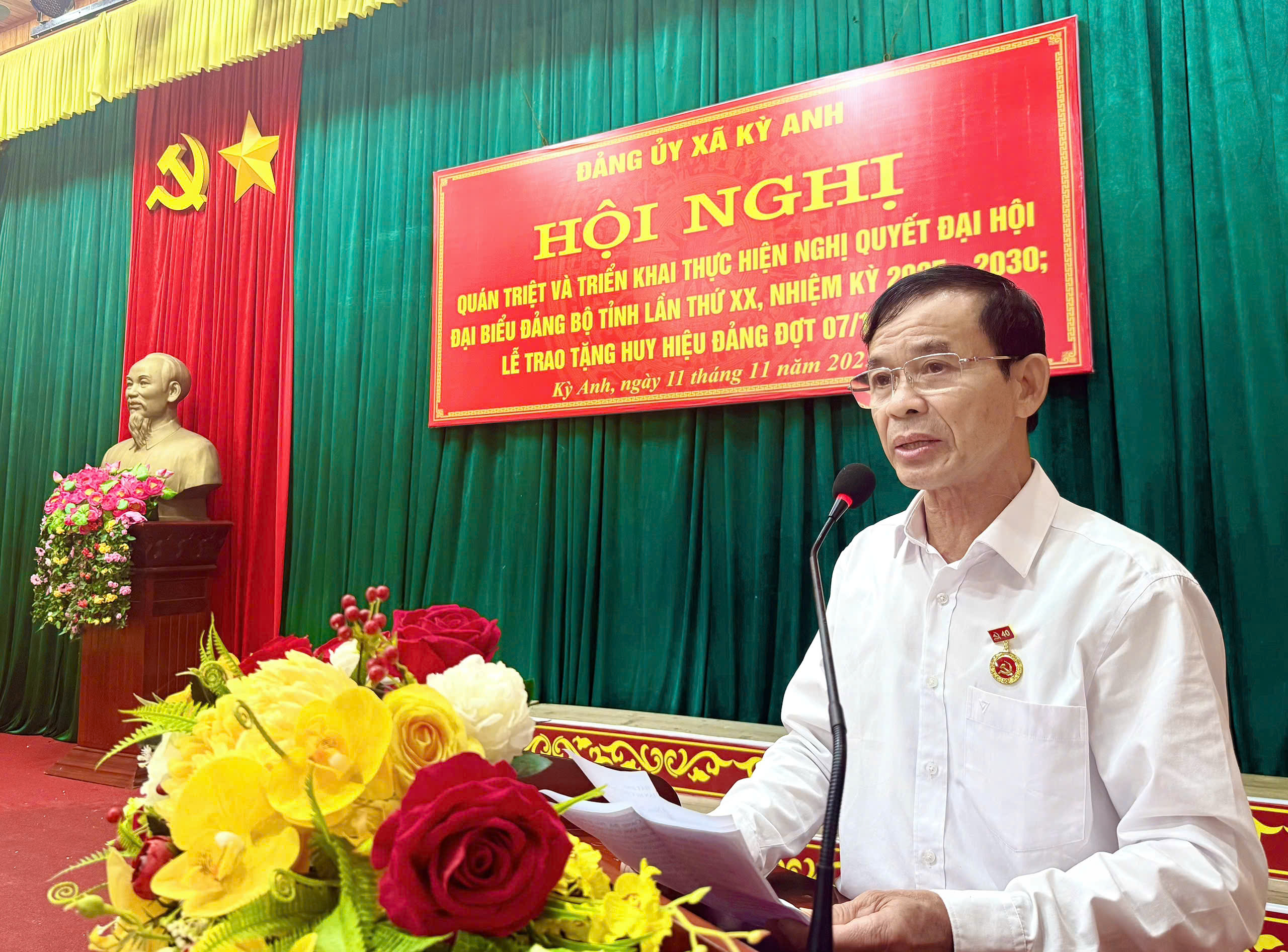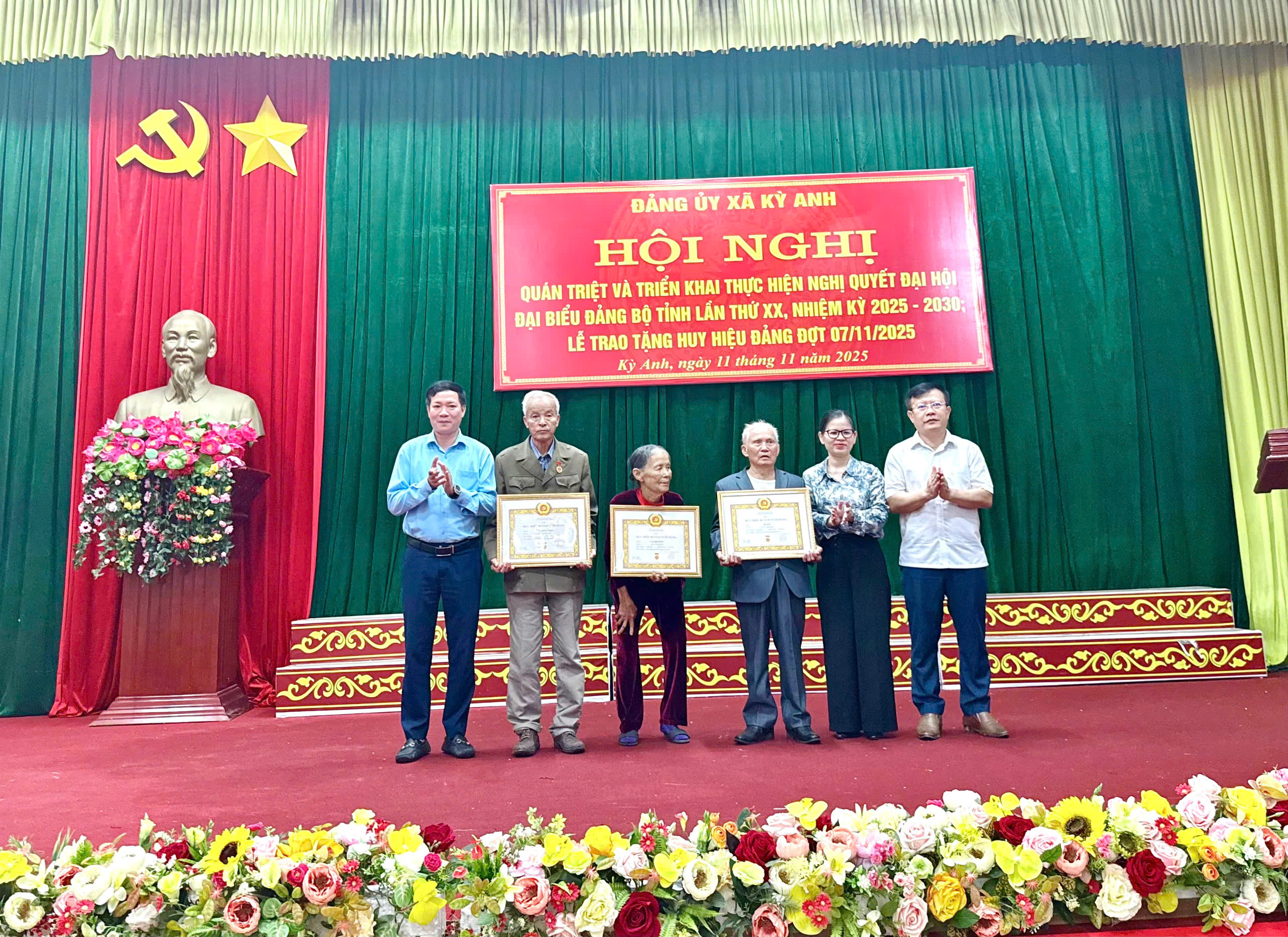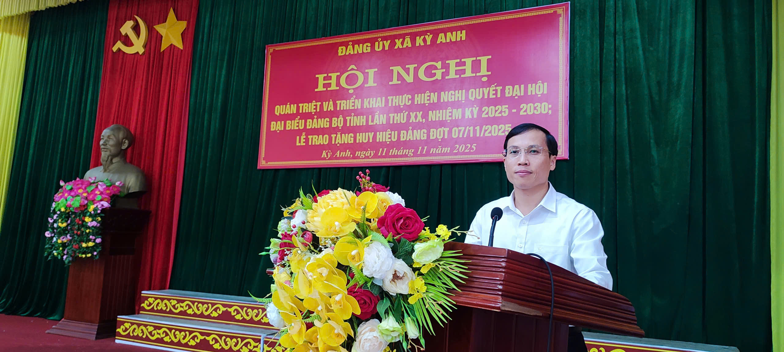 Sáng ngày 11/11/2025, Ban Thường vụ Đảng ủy xã Kỳ Anh kết nối đường truyền tổ chức Hội nghị trực tuyến nghiên cứu, học tập, quán triệt, tuyên truyền và triển khai thực hiện Nghị quyết Đại hội đại biểu Đảng bộ tỉnh lần thứ XX, nhiệm kỳ 2025 – 2030 và Tổ chức Lễ trao Huy hiệu cho các Đảng viên