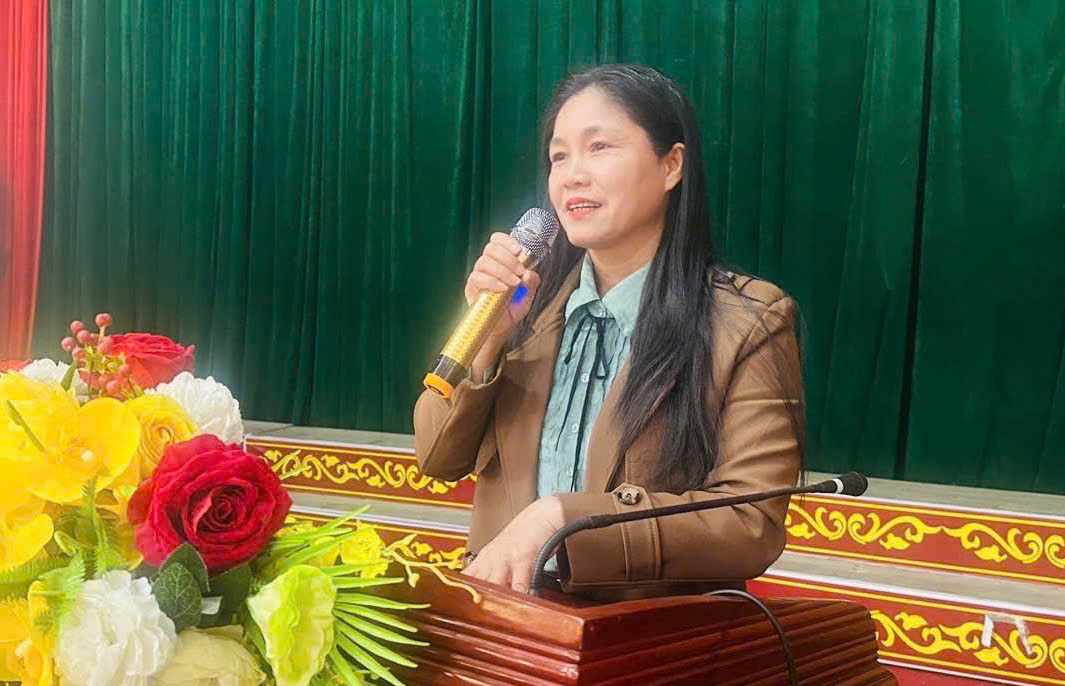 Đồng chí Nguyễn Thị Hưởng - Chủ tịch Hội nông dân phát biểu tại buổi tập huấn