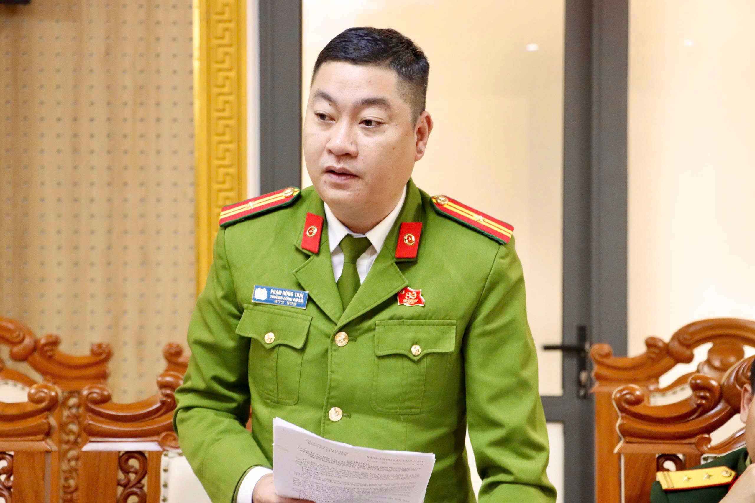 Đồng chí Phạm Hồng Thái - Trưởng Công an xã phát biểu