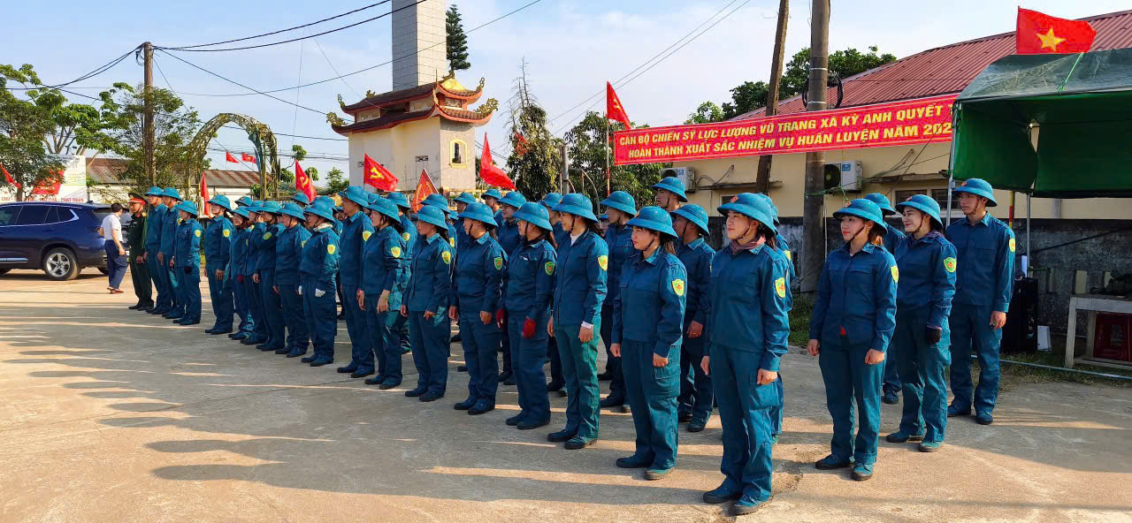 Phát biểu động viên, đồng chí Trần Thành Nam - TUV, Bí thư Đảng ủy, Chủ tịch HĐND xã đề nghị các chiến sĩ dân quân tiếp tục phát huy tinh thần đoàn kết, chấp hành nghiêm kỷ luật, tích cực học tập, rèn luyện, nắm vững các nội dung huấn luyện; qua đó nâng cao bản lĩnh chính trị, trình độ, khả năng sẵn sàng chiến đấu, đáp ứng yêu cầu nhiệm vụ trong tình hình mới.