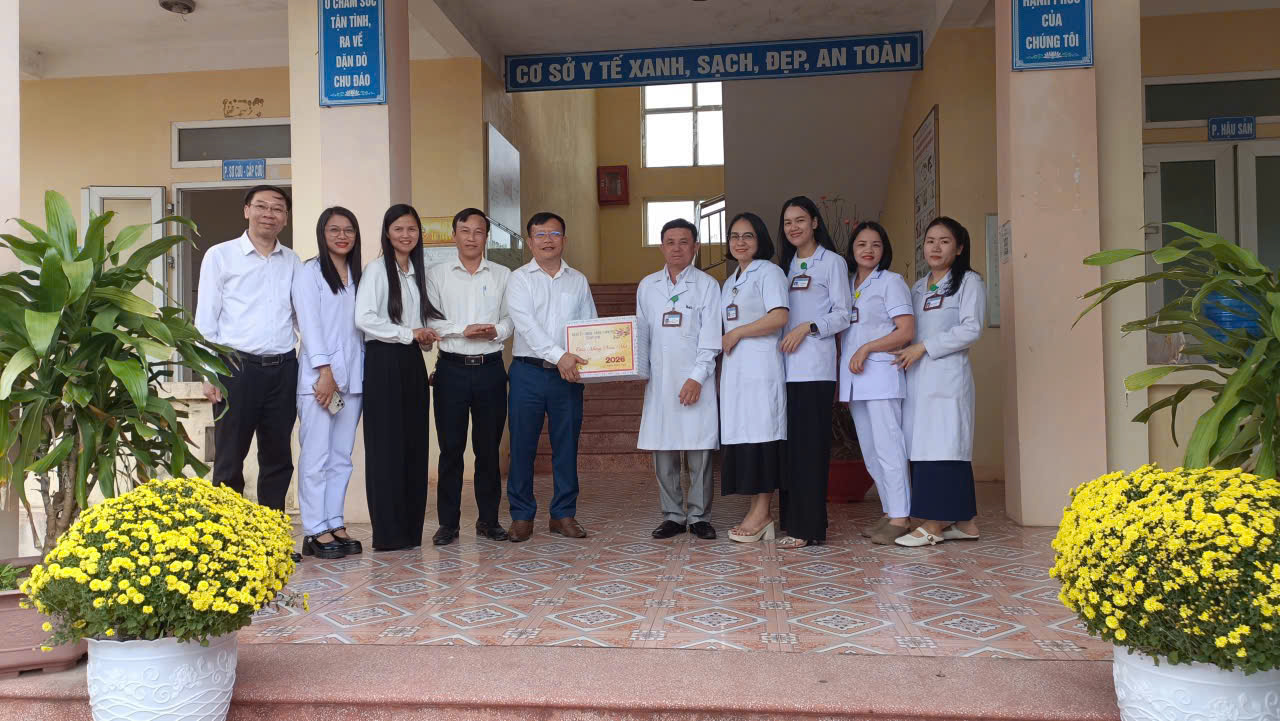 Lãnh đạo xã thăm hỏi, tặng quà cán bộ, nhân viên Trung tâm Y tế Kỳ Anh.