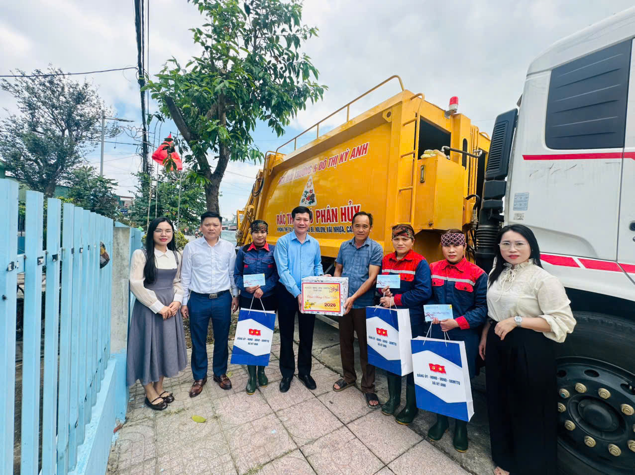 Đoàn trao quà Tết cho Hợp tác xã Môi trường & Quản lý đô thị Kỳ Anh giữ gìn vệ sinh môi trường xã nhà trong dịp cao điểm.