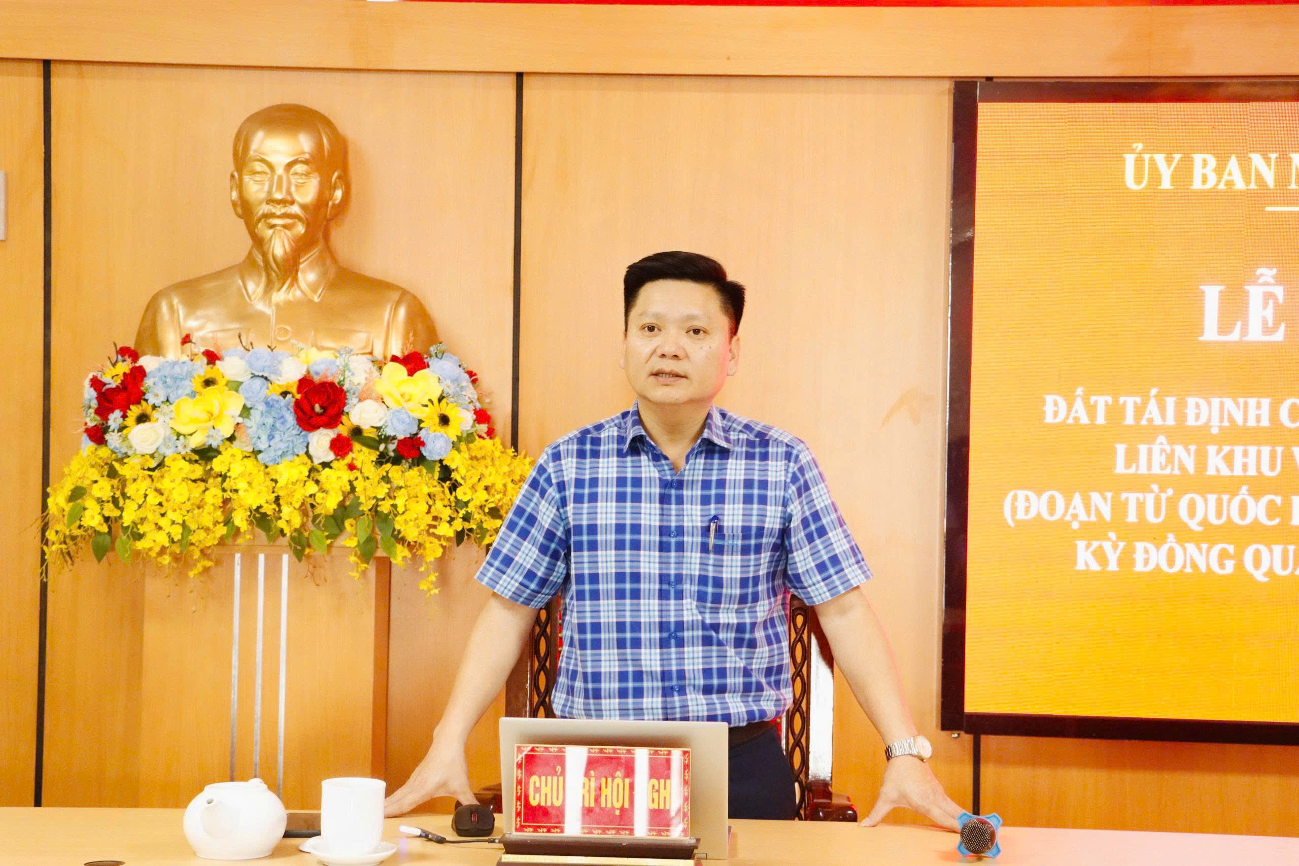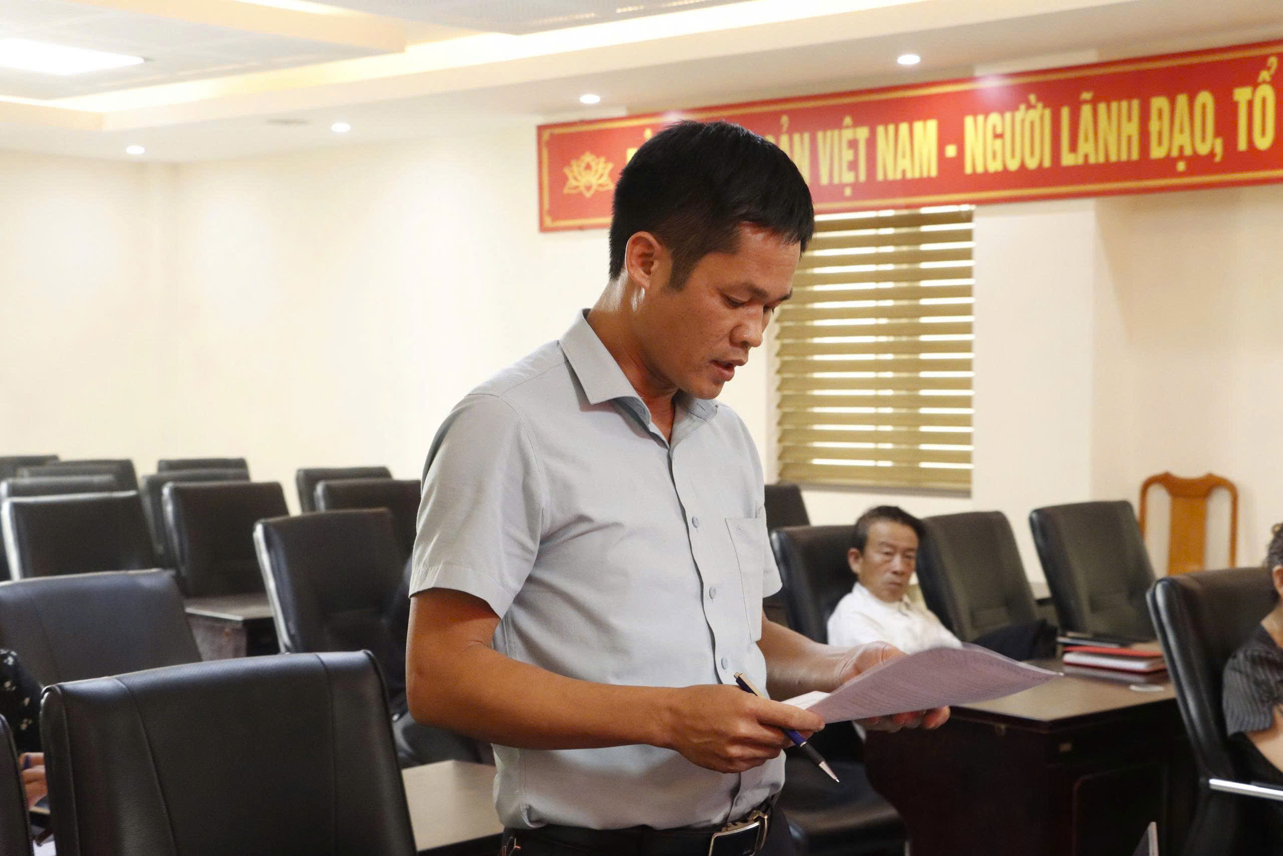 Đồng chí Võ Xuân Thành - Phó Chủ tịch UBND xã chủ trì Lễ bốc thăm; cùng tham dự có Hoàng Văn Anh - Phó Trưởng phòng Kinh tế xã và các đồng chí thành viên phụ trách Hội đồng bồi thường, hỗ trợ, tái định cư dự án; Bí thư Chi bộ, trưởng các thôn Tân Giang, thôn Đồng Tiến và các hộ được bốc thăm.