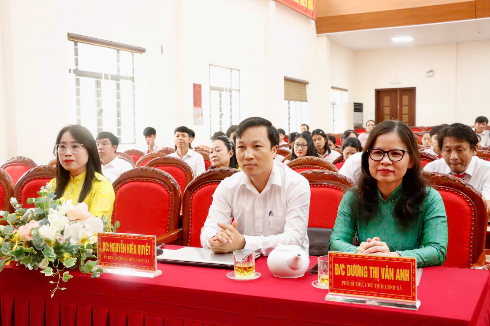Tham dự buổi lễ có đồng chí Trần Thành Nam – TUV, Bí thư Đảng ủy, Chủ tịch HĐND xã; đồng chí Nguyễn Anh Hoan – Phó Bí thư Thường trực Đảng ủy; đồng chí Dương Thị Vân Anh – Phó Bí thư Đảng ủy, Chủ tịch UBND xã; cùng các đồng chí trong Ban Thường vụ Đảng ủy, Thường trực HĐND, UBND, Ủy ban MTTQ xã; lãnh đạo các phòng, ban; cán bộ quản lý, giáo viên và các em học sinh đạt thành tích xuất sắc.