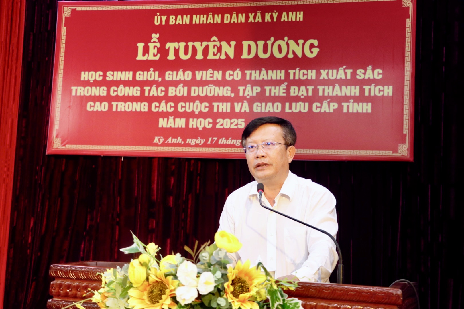 Phát biểu tại buổi lễ, đồng chí Nguyễn Anh Hoan – Phó Bí thư Thường trực Đảng ủy xã ghi nhận và đánh giá cao những kết quả nổi bật trong công tác bồi dưỡng học sinh giỏi của địa phương năm học vừa qua; đồng thời nhấn mạnh, những kết quả đạt được là nền tảng quan trọng để tiếp tục nâng cao chất lượng giáo dục toàn diện, đáp ứng yêu cầu phát triển trong giai đoạn mới.