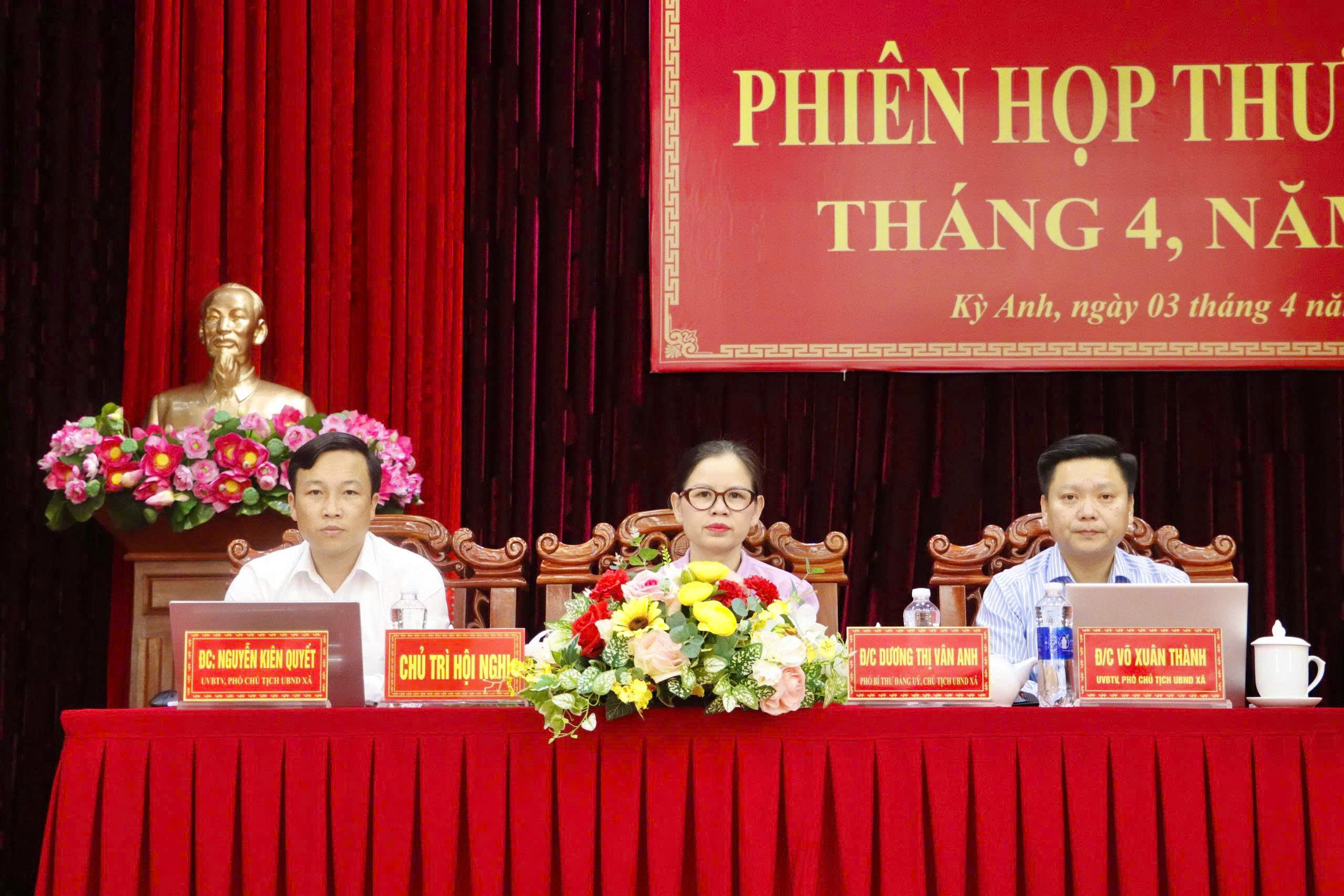 Dự và chỉ đạo phiên họp có đồng chí Trần Thành Nam - TUV, Bí thư Đảng ủy, Chủ tịch HĐND xã. Các đồng chí Dương Thị Vân Anh - Phó Bí thư Đảng ủy, Chủ tịch UBND xã; Võ Xuân Thành, UV BTV, Phó chủ tịch UBND xã; Nguyễn Kiên Quyết, UV BTV, Phó chủ tịch UBND xã chủ trì cuộc họp.
