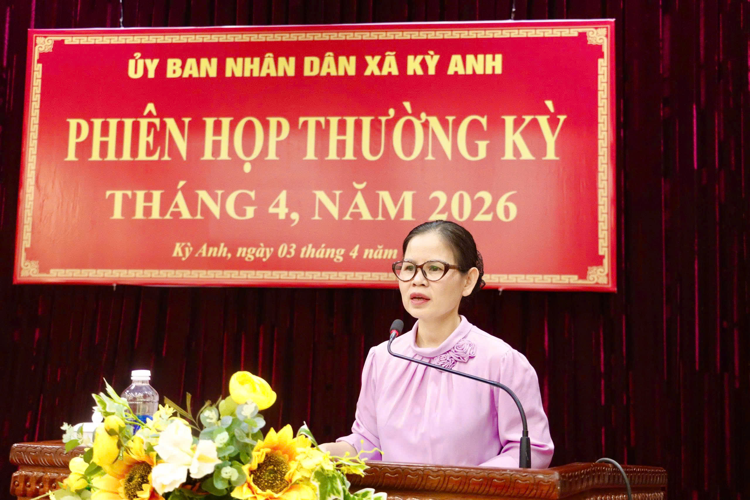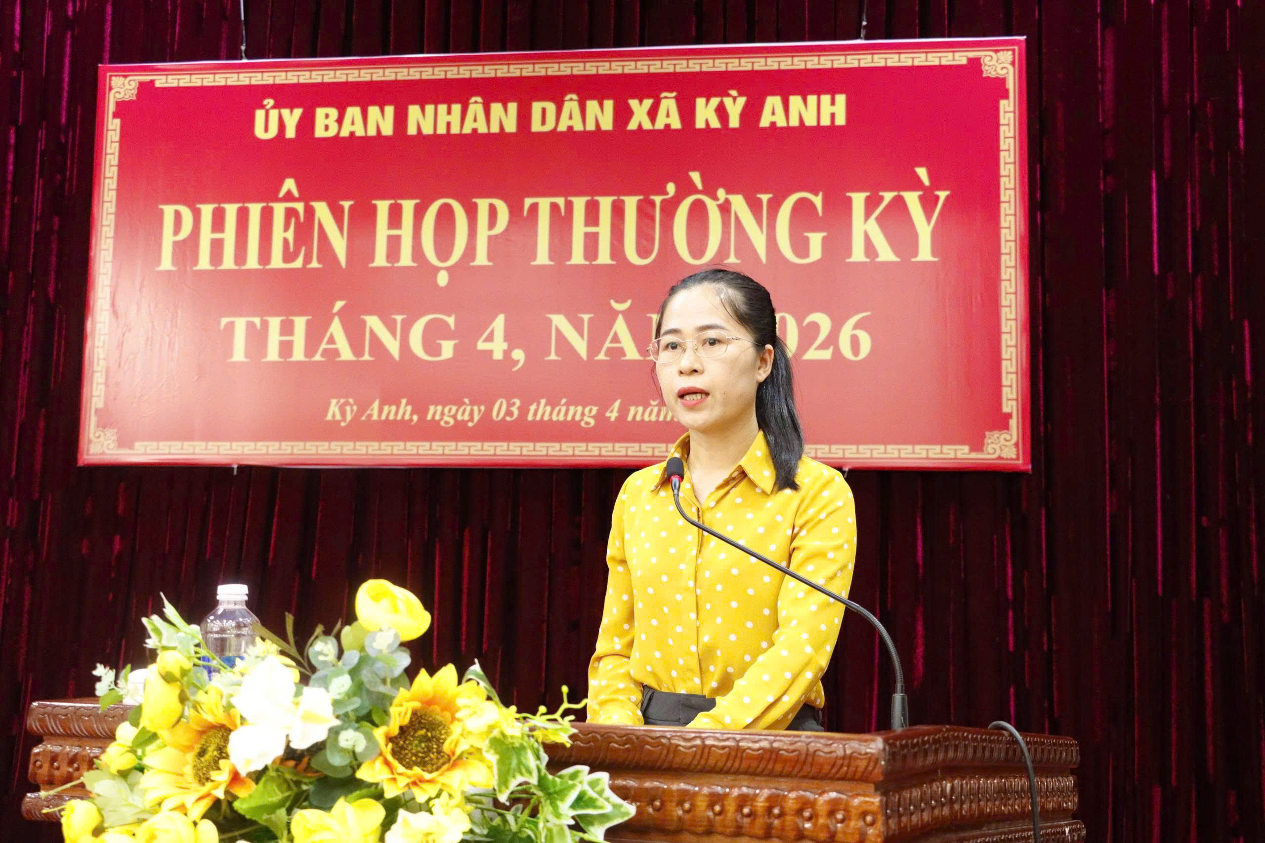 Đ.c Nguyễn Thị Hường - Trưởng Phòng Kinh tế báo cáo Tình hình Kinh tế-xã hội, quốc phòng -An ninh Qúy I, nhiệm vụ trọng tâm Qúy II năm 2026.