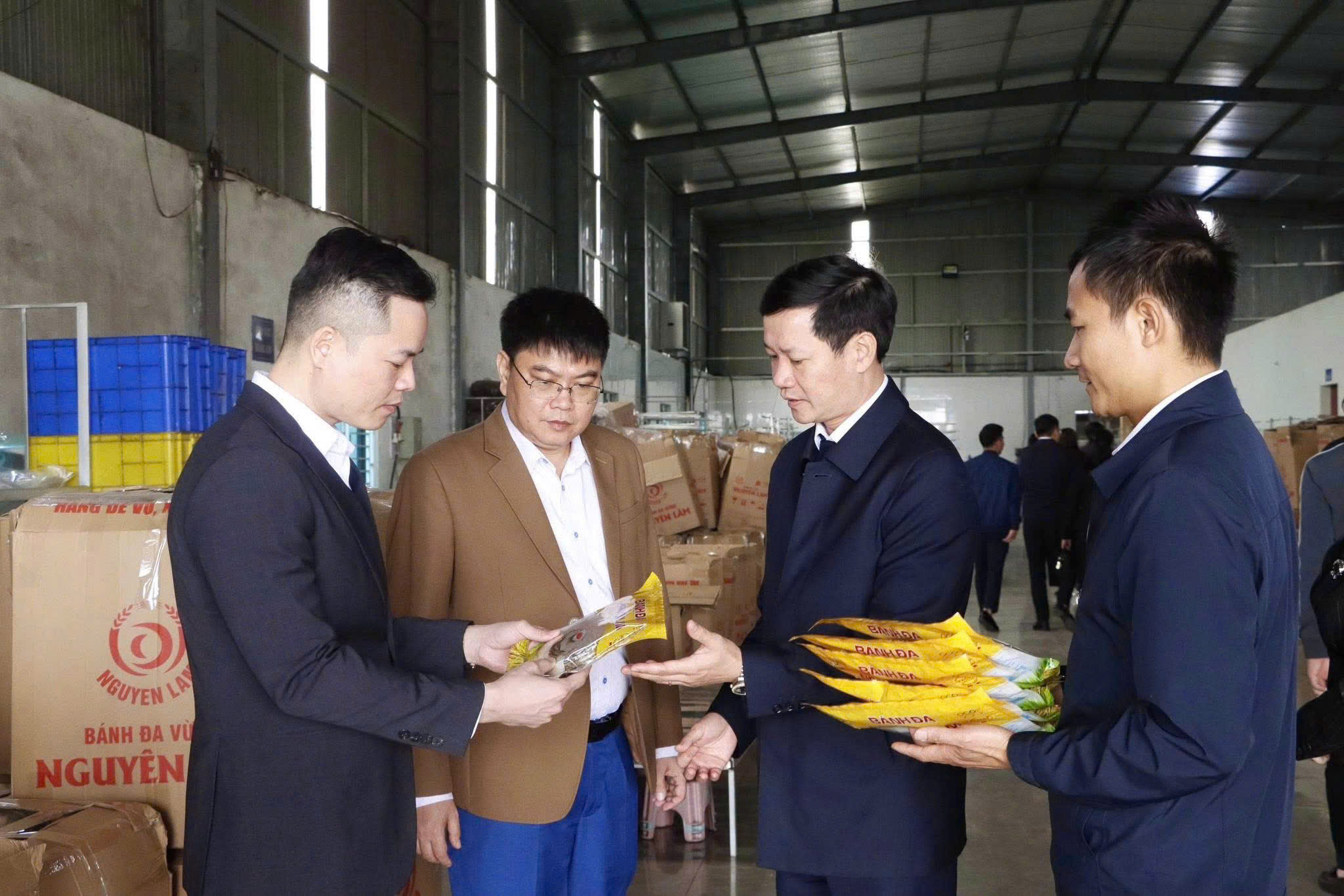 Lãnh đạo xã Kỳ Anh giới thiệu sản phẩm OCOP tới đoàn công tác xã Thái Hòa, tỉnh Tuyên Quang.