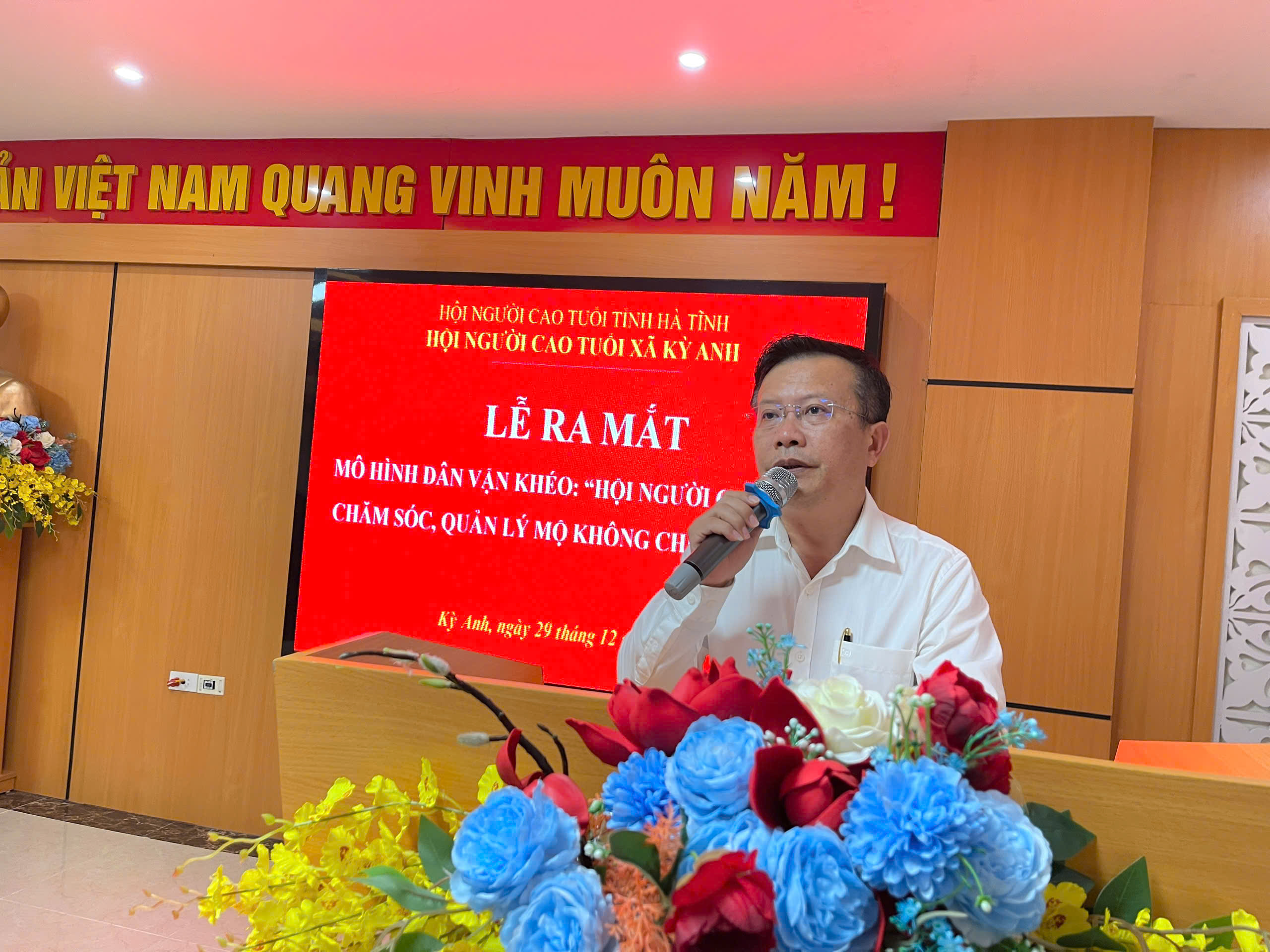 Phát biểu tại buổi lễ, đồng chí Nguyễn Thái Hà – Phó phòng Đoàn thể và các Hội, Ban Tuyên giáo và Dân vận Tỉnh ủy ghi nhận và đánh giá cao tinh thần chủ động, sáng tạo của Đảng ủy xã Kỳ Anh và Hội Người cao tuổi xã trong việc xây dựng mô hình dân vận khéo gắn với nhiệm vụ chính trị ở cơ sở. Đồng chí nhấn mạnh: “Mô hình ‘Hội Người cao tuổi chăm sóc, quản lý mộ vô chủ’ không chỉ mang ý nghĩa nhân văn sâu sắc mà còn góp phần lan tỏa những giá trị đạo đức, truyền thống tốt đẹp của dân tộc. Đây là mô hình thể hiện rõ vai trò nêu gương, trách nhiệm xã hội của người cao tuổi, rất cần được duy trì, nhân rộng trong thời gian tới.” Đồng chí đề nghị cấp ủy, chính quyền địa phương tiếp tục quan tâm, tạo điều kiện để mô hình hoạt động hiệu quả, bền vững.