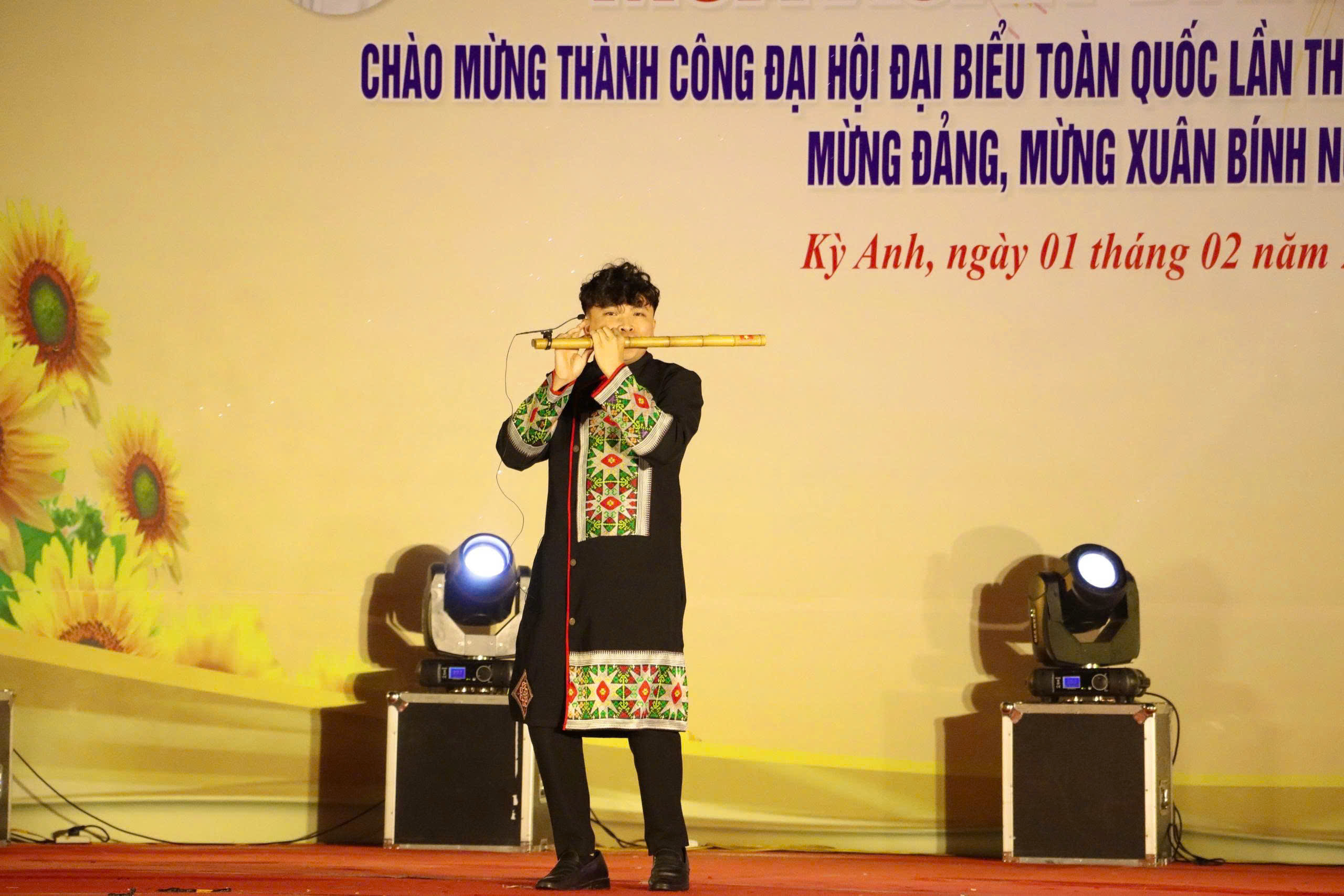Khán giả được đắm chìm trong tiếng sáo mèo điêu luyện của nghệ sĩ Minh Zô và những ca khúc ca ngợi sự đổi mới của quê hương như Kỳ Anh quê hương ngày mới.