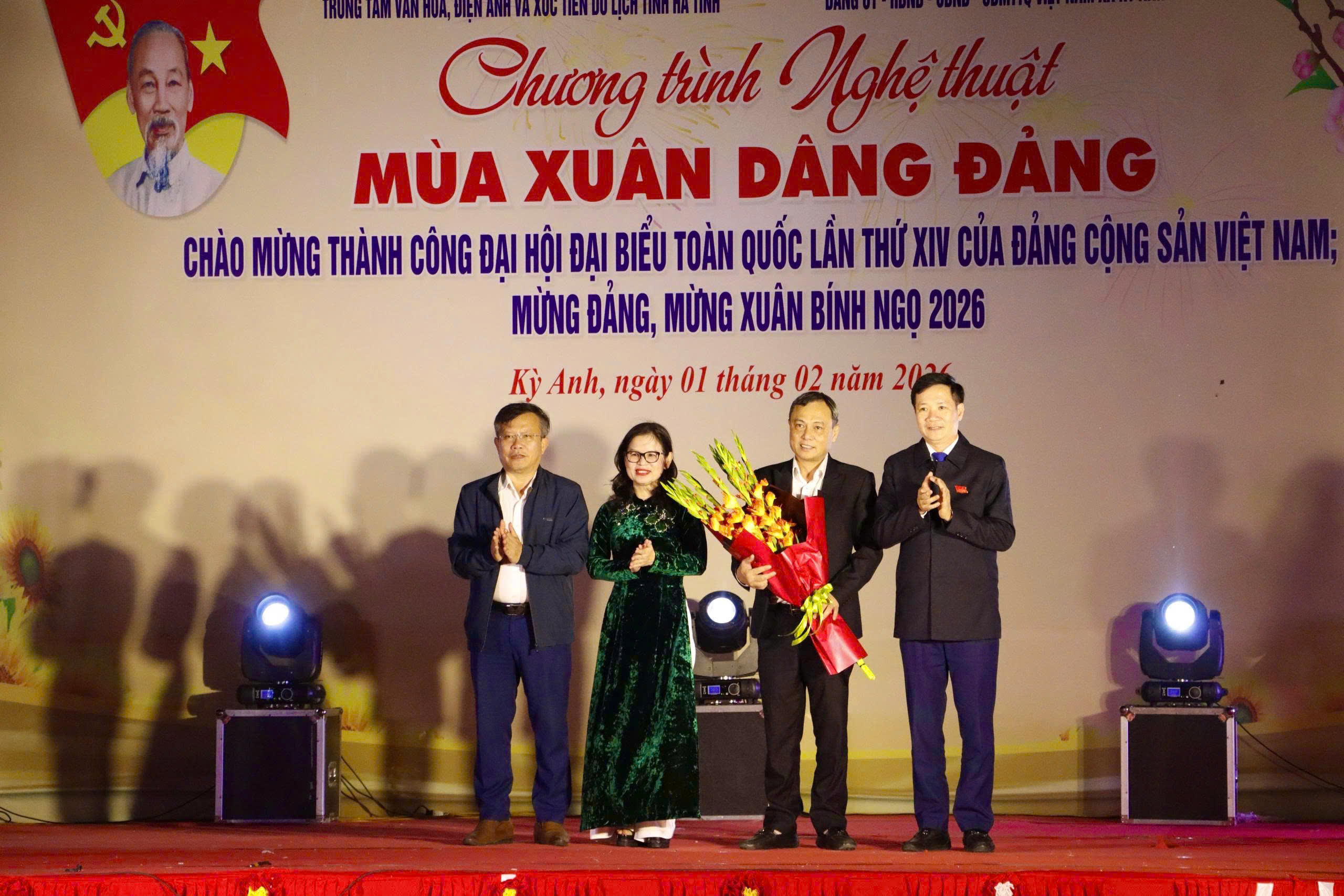 Đảng bộ và chính quyền xã Kỳ Anh tặng hoa cảm ơn Trung tâm Văn hóa, Điện ảnh và Xúc tiến du lịch tỉnh - đơn vị chủ trì, phối hợp thực hiện chương trình...