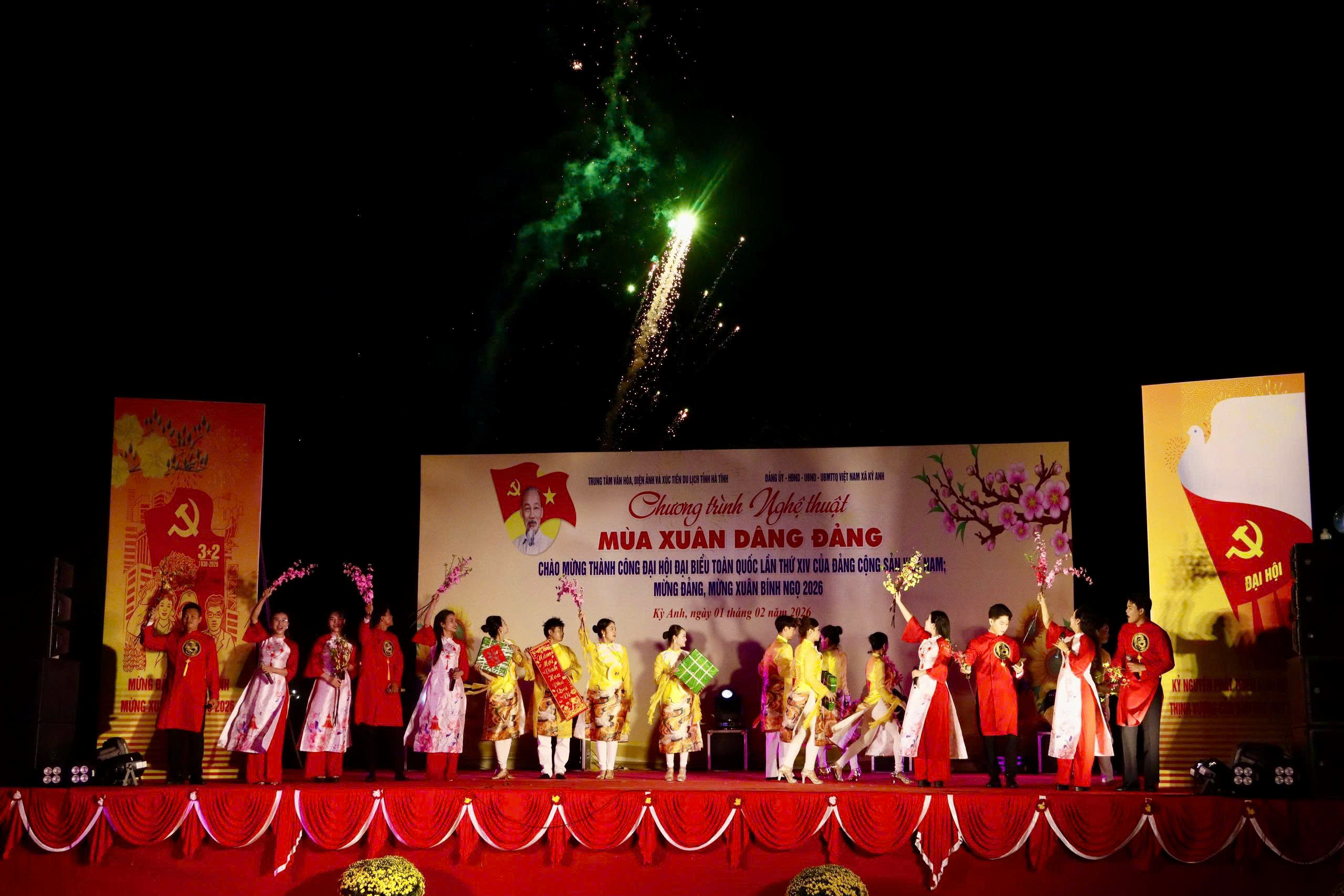 Sự kết hợp hài hòa giữa nghệ thuật chuyên nghiệp và phong trào quần chúng đã tạo nên bức tranh nghệ thuật sinh động, lan tỏa không khí rạo rực, phấn khởi, thấm đẫm niềm tự hào hướng về Đảng, về mùa Xuân mới của quê hương, đất nước. Các tiết mục cùng màn pháo hoa tầm thấp mang đến những khoảnh khắc rực rỡ, thu hút sự cổ vũ của đông đảo khán giả./.