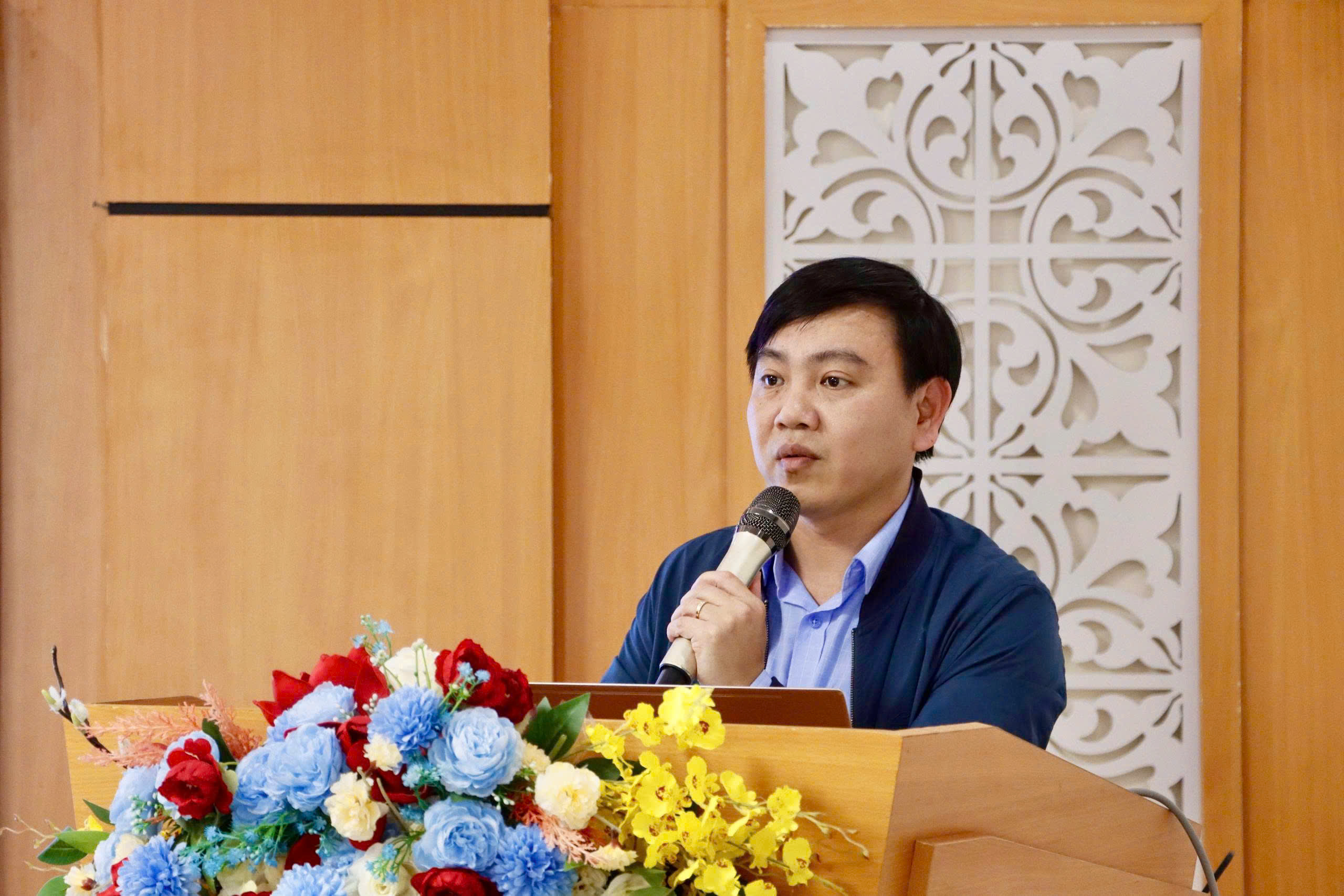 Đồng chí Trần Xuân Sơn - Trưởng phòng Truyền thông và đổi mới sáng tạo, Trung tâm Khoa học, Công nghệ và Chuyển đổi số Hà Tĩnh hướng dẫn tại buổi tập huấn