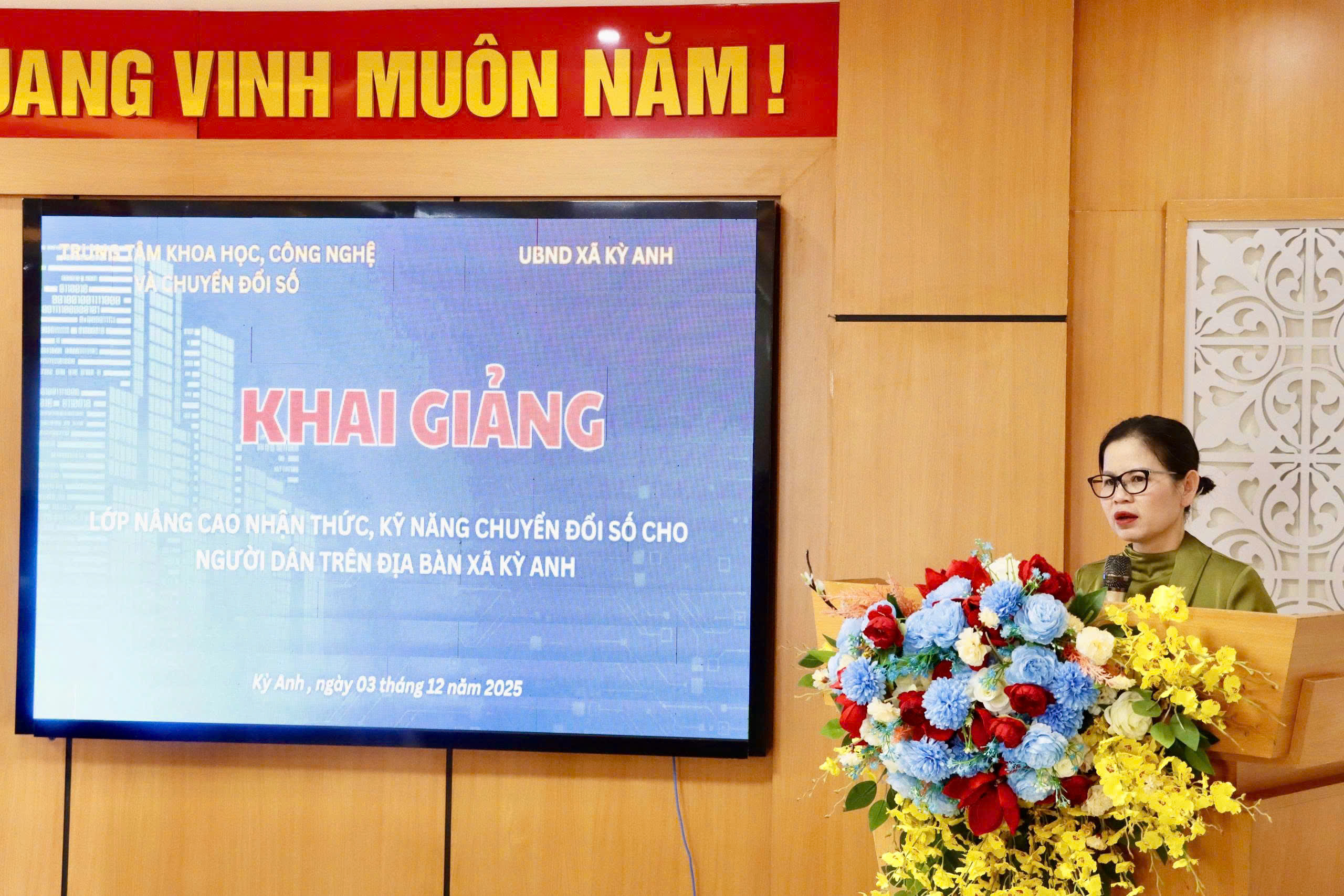 Phát biểu khai mạc, đồng chí Dương Thị Vân Anh - Phó Bí thư Đảng ủy, Chủ tịch UBND xã đề nghị các học viên nêu cao tinh thần trách nhiệm, nghiêm túc học tập. Mỗi học viên cần trở thành lực lượng nòng cốt (Tổ Chuyển đổi số) trong việc tuyên truyền, hướng dẫn người dân thực hiện các thủ tục hành chính và sử dụng các nền tảng số trên môi trường mạng.