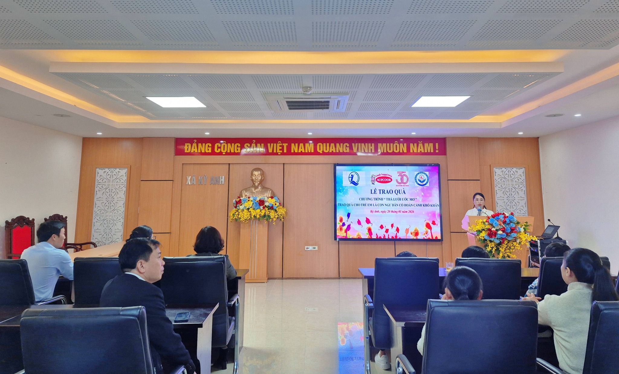 Thực hiện chương trình hỗ trợ trẻ em là con ngư dân có hoàn cảnh khó khăn do Quỹ Bảo trợ Trẻ em Việt Nam phối hợp với Công ty Cổ phần Acecook Việt Nam tài trợ, sáng ngày 20/01/2026, tại Ủy ban nhân dân xã Kỳ Anh đã tổ chức trao quà cho các em học sinh mồ côi có hoàn cảnh khó khăn.
