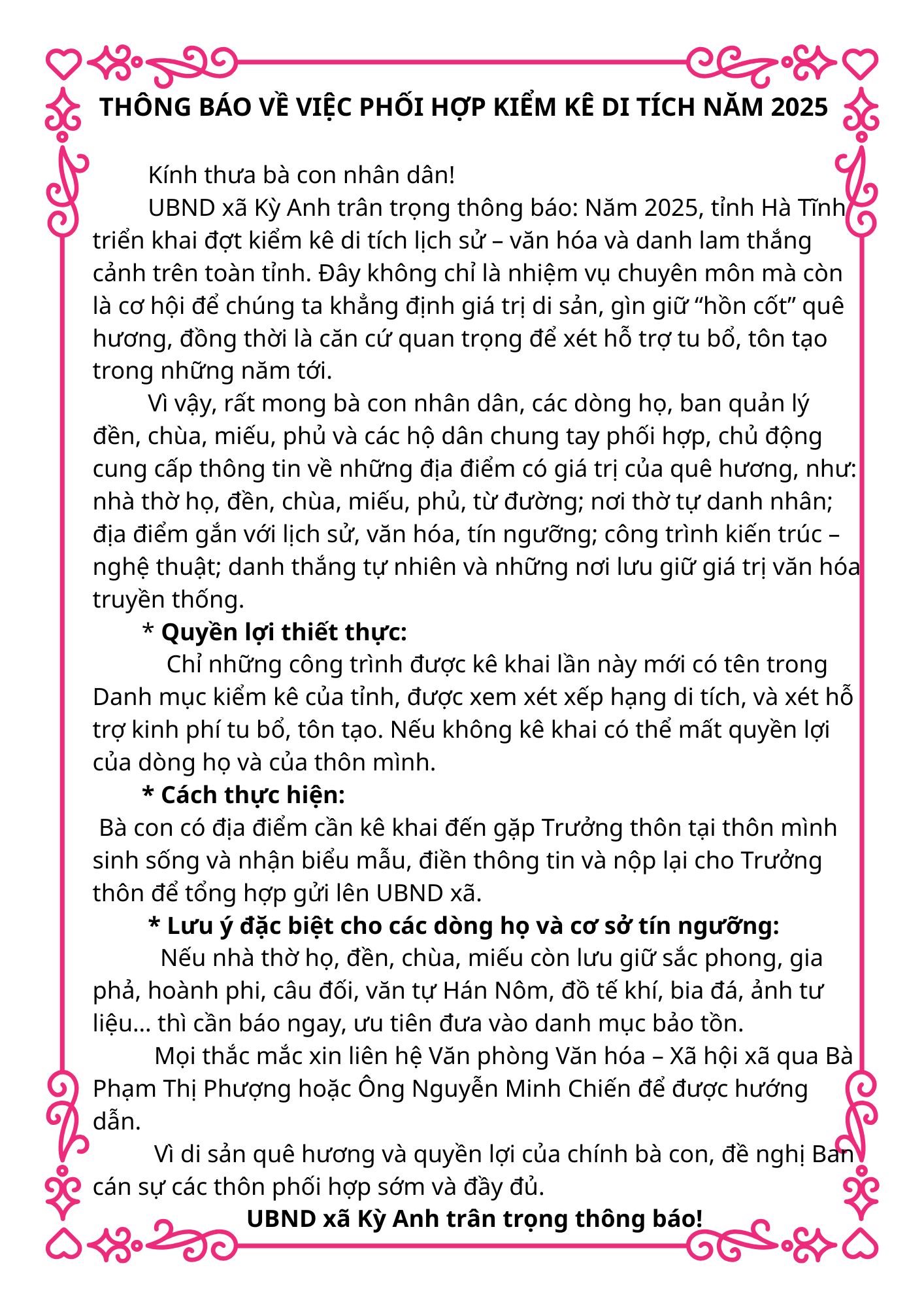 Thông báo về việc phối hợp kiểm kê di tích năm 2025Hoa Phượng03/11/2025A -A+Hoa Phượng03/11/2025A -A+