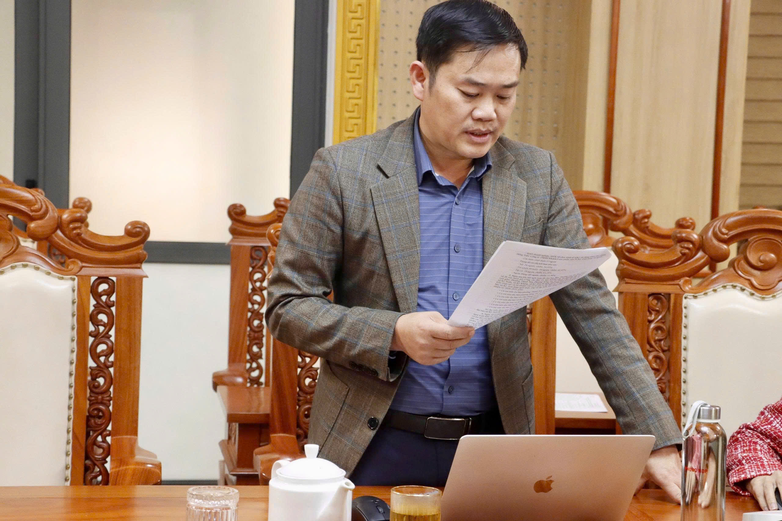 Đồng chí Trần Thành Nam - Bí thư Đảng ủy xã, Chủ tịch HĐND xã chủ trì hội nghị