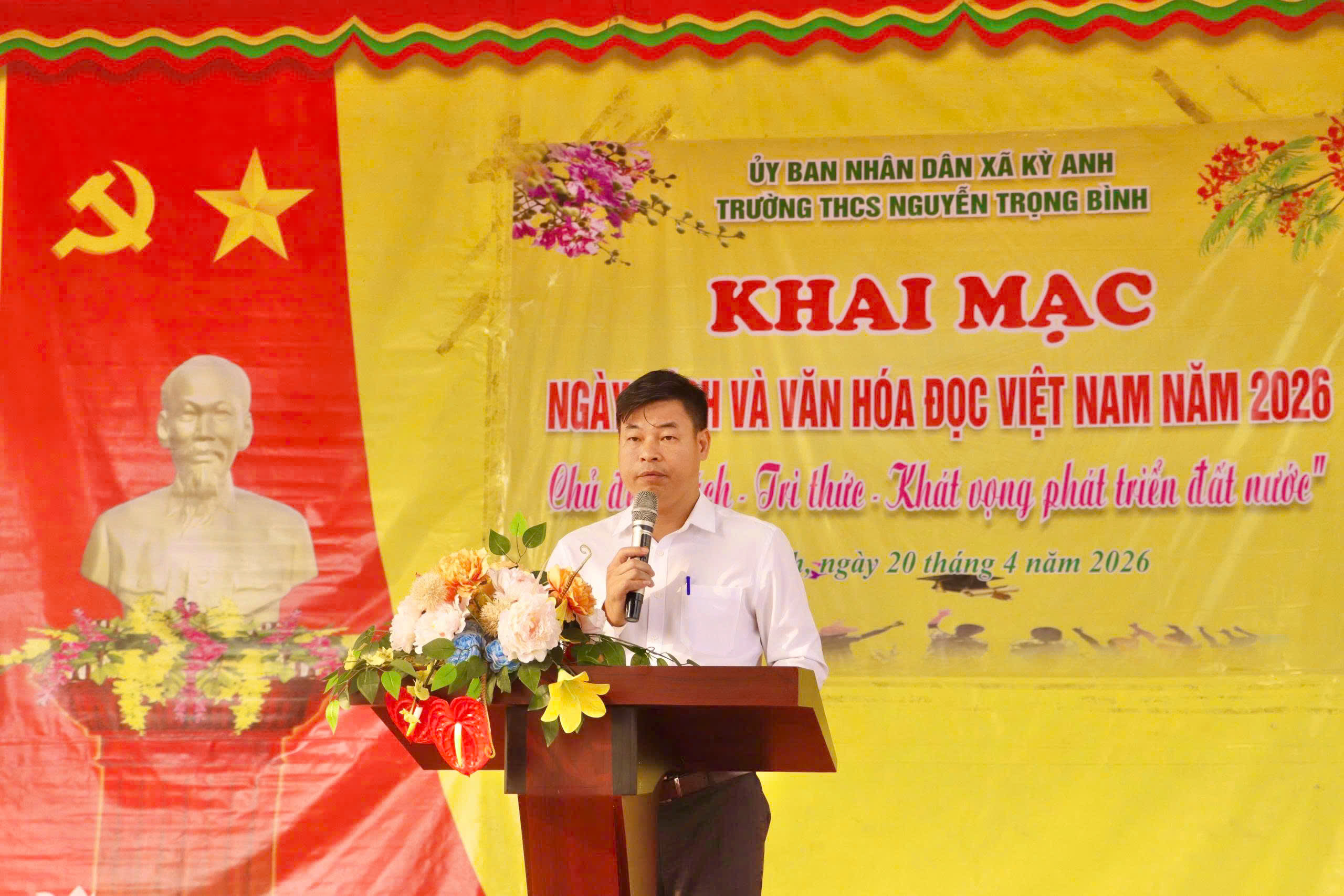 Phát biểu khai mạc tại ngày hội, thầy giáo Nguyễn Văn Trọng – Phó Hiệu trưởng nhà trường nhấn mạnh: “Sự kiện là dịp quan trọng để thắp lên ngọn lửa đam mê đọc sách, đồng thời giáo dục truyền thống cách mạng vẻ vang cho thế hệ trẻ.” Thầy khẳng định, thông qua những trang sách quý về cuộc đời, sự nghiệp cách mạng kiên trung của đồng chí Hà Huy Tập cũng như những mốc son chói lọi của ngày đại thắng 30/4, các em học sinh sẽ thấu hiểu sâu sắc hơn giá trị của độc lập, tự do và sự hy sinh của các thế hệ cha anh. Từ những bài học lịch sử vô giá đó, mỗi học sinh sẽ tự ý thức được trách nhiệm của bản thân, không ngừng nỗ lực học tập, rèn luyện và nuôi dưỡng khát vọng cống hiến, quyết tâm xây dựng quê hương Hà Tĩnh ngày càng giàu đẹp, văn minh.