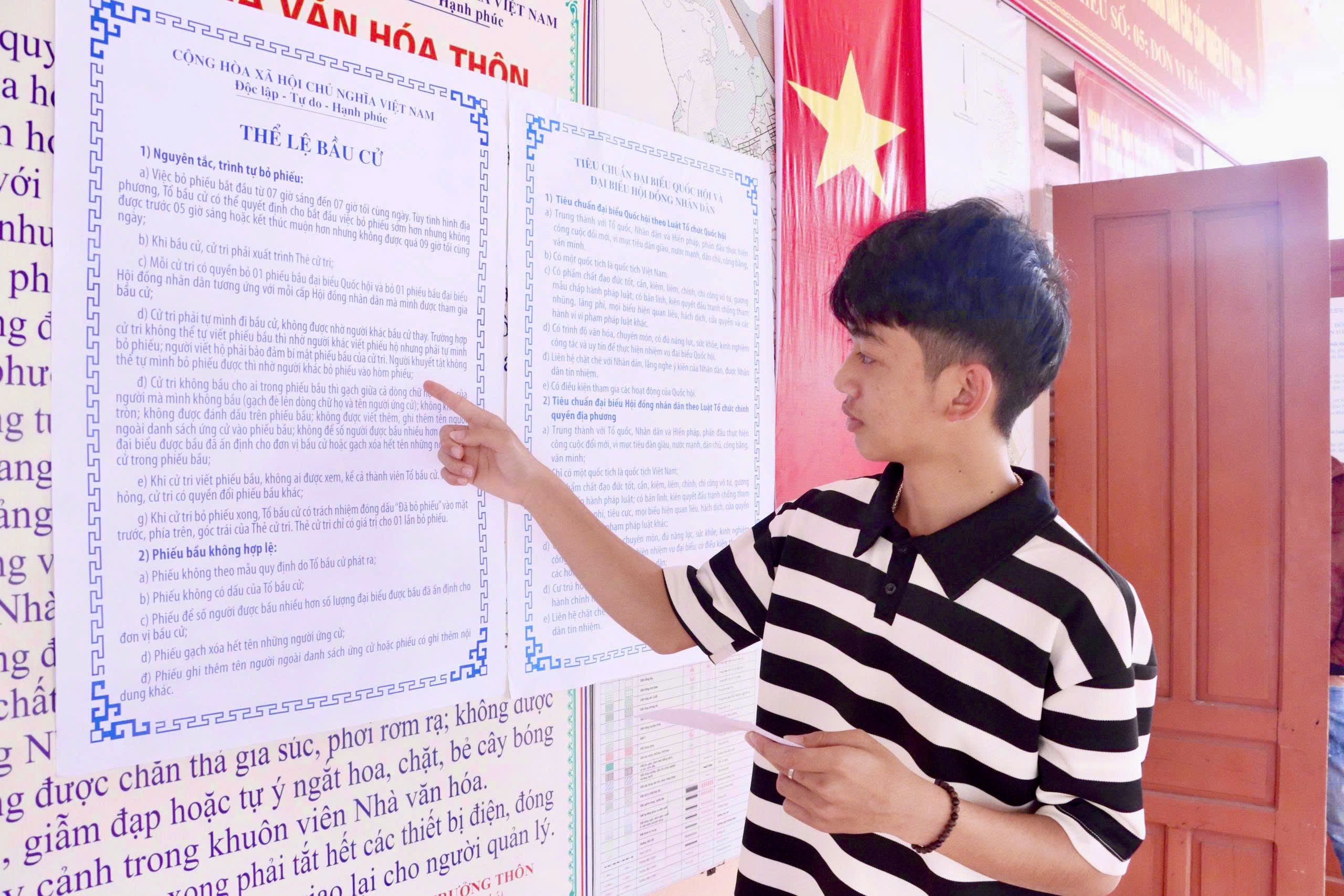 Sáng nay, tại thôn Phú Long, không khí trở nên náo nức hơn hẳn bởi sự xuất hiện của những "tân cử tri" mới bước sang tuổi mười tám. Trong số đó, Nguyễn Tiến Việt – nam sinh lớp 12A6 trường THPT Nguyễn Huệ không giấu được sự háo hức xen lẫn chút hồi hộp. Với Việt, tuổi 18 năm nay thật đặc biệt khi được cầm tấm thẻ cử tri trên tay.