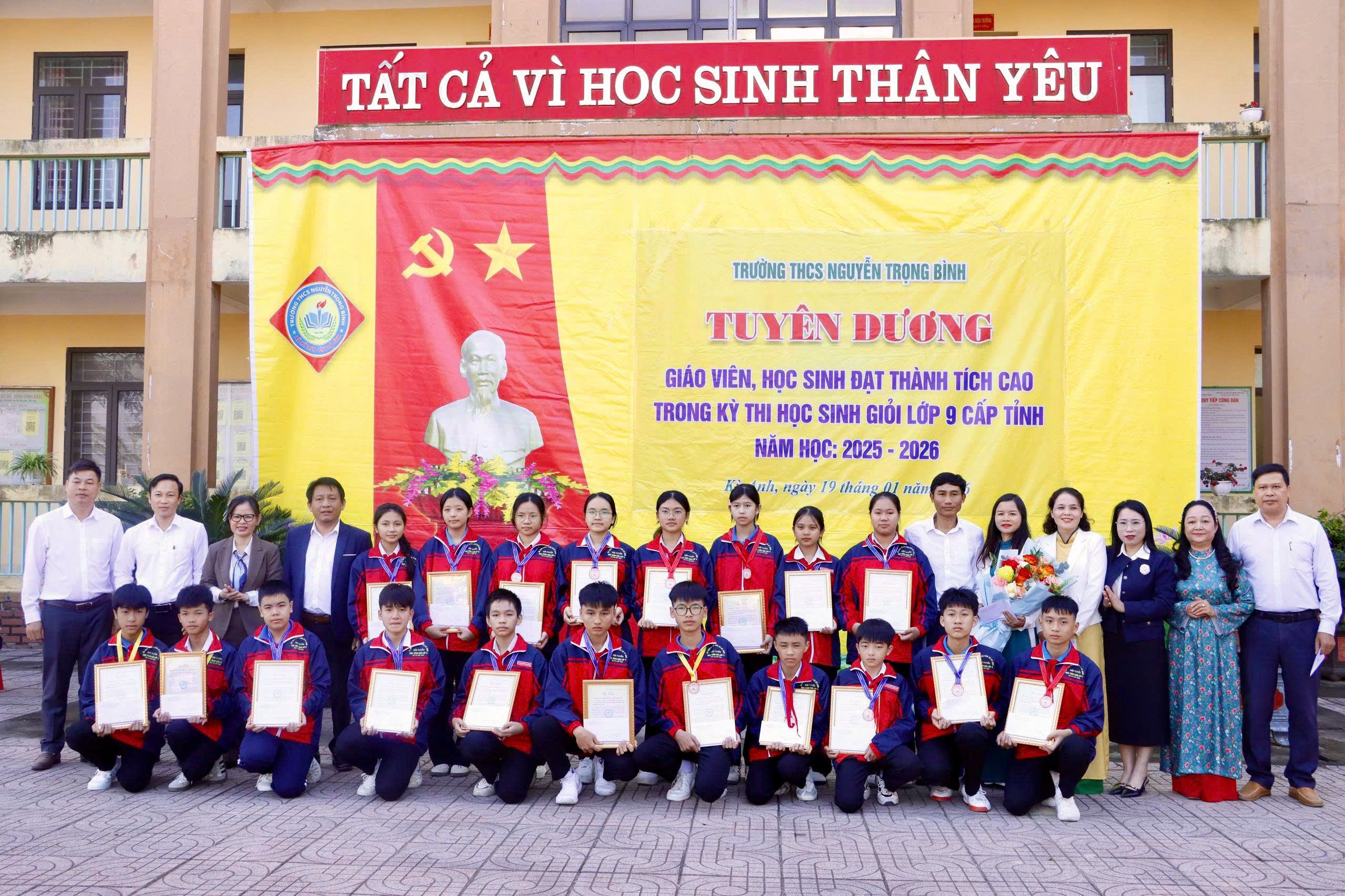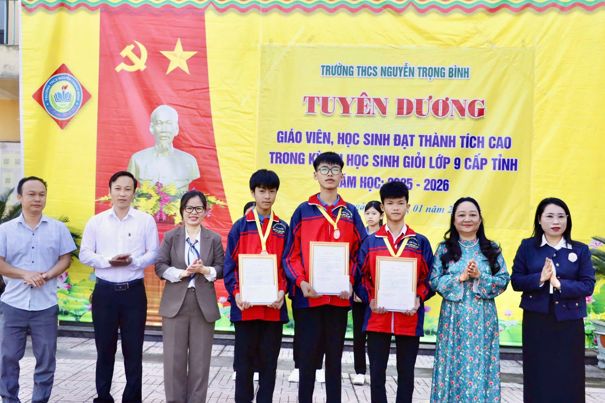 Trong kỳ thi năm nay, trường THCS Nguyễn Trọng Bình ghi nhận sự tiến bộ vượt bậc về cả số lượng và chất lượng giải. Cụ thể, nhà trường có tổng cộng 19 học sinh đạt giải, bao gồm: 3 giải Nhất, 3 giải Nhì, 8 giải Ba và 5 giải Khuyến khích. So với năm học trước (12 giải), thành tích của nhà trường đã có bước phát triển đáng kể. Các đội tuyển có tỷ lệ đạt giải cao tập trung ở các môn: Toán, Vật lý, Địa lý, Tin học và Lịch sử.