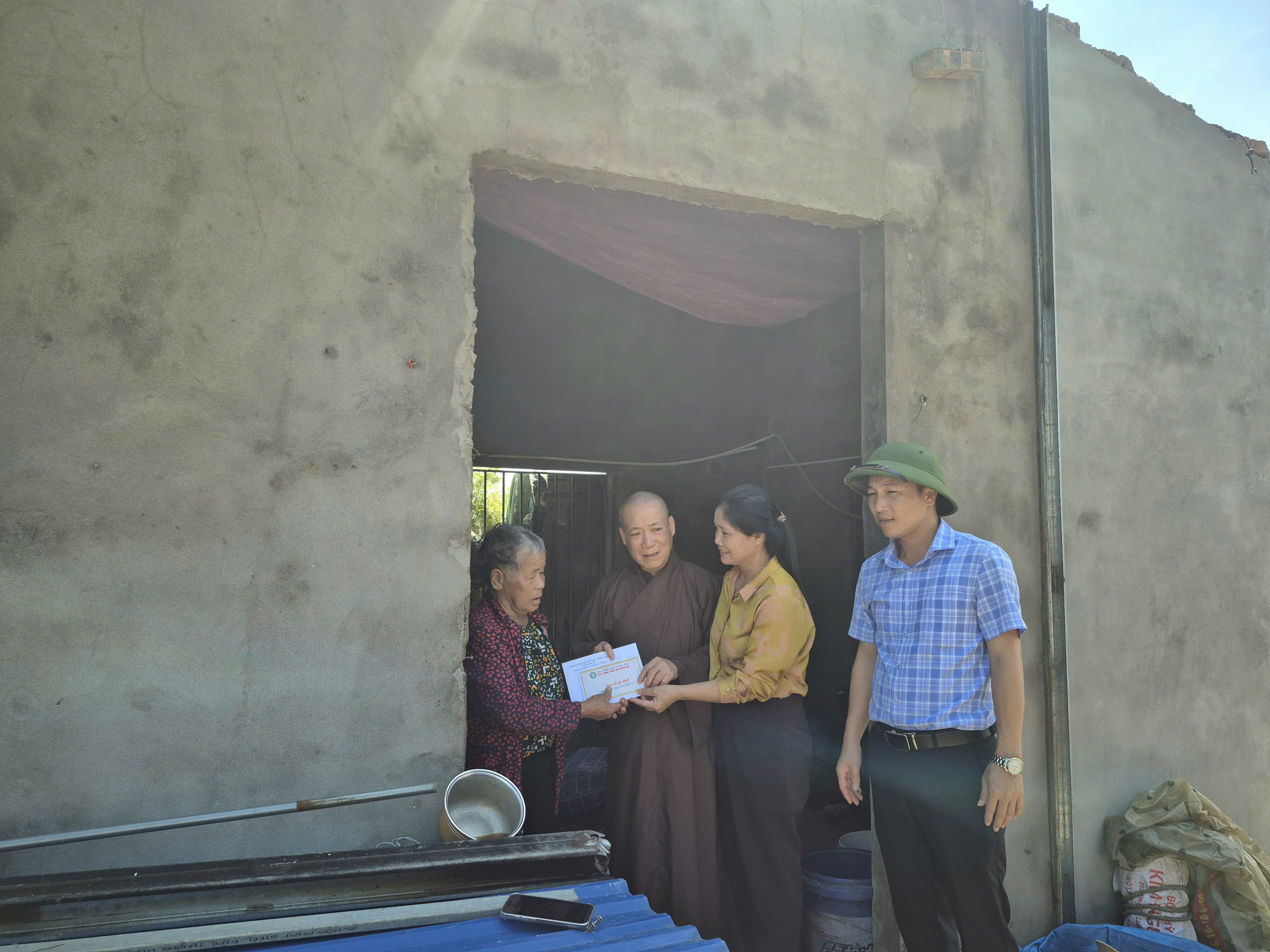 Sáng ngày 02/10/2025 đồng chí Nguyễn Kiên Quyết – Phó Chủ tịch UBND xã; đồng chí Nguyễn Thị Hưởng – Phó Chủ tịch Ủy ban MTTQ xã, Chủ tịch Hội Nông dân; đồng chí Trần Thị Hoa – Trưởng phòng Văn hóa – Xã hội đã kết nối với Hòa thượng Thích Bảo Nghiêm – Phó Chủ tịch Hội đồng Trị sự, Trưởng Ban Hoằng pháp Trung ương GHPGVN, Trưởng Ban Trị sự GHPGVN tỉnh Hà Tĩnh; Hòa thượng Thích Chúc Cường, Trụ trì chùa Hữu Lạc xã Kỳ Xuân và chư Tôn đức trong Ban Trị sự tỉnh đến thăm hỏi, động viên, trao quà hỗ trợ cho các hộ gia đình bị thiệt hại nặng nề sau cơn bão số 5 và bão số 10 đã đổ bộ vào tỉnh Hà Tĩnh và các tỉnh miền Trung.