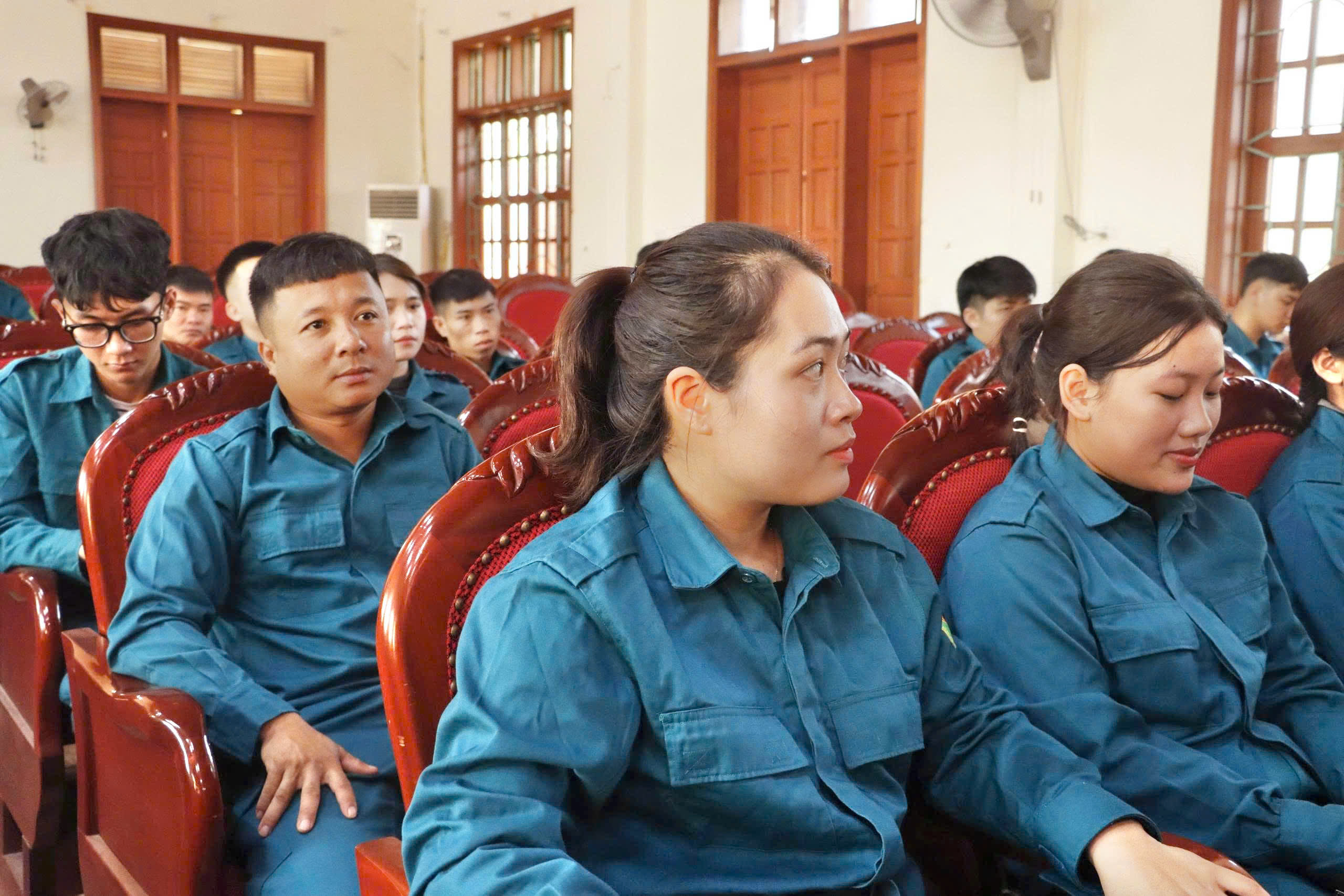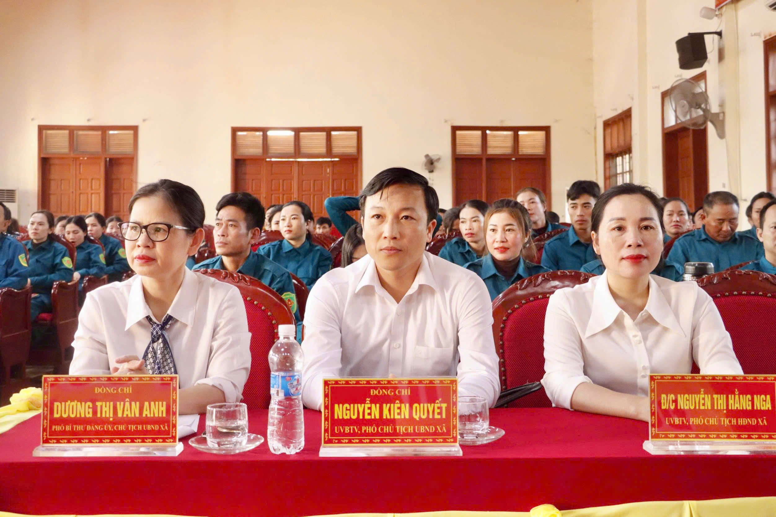 Tham dự có các đồng chí Dương Thị Vân Anh - Phó Bí thư Đảng ủy, Chủ tịch UBND xã; Nguyễn Thị Hằng Nga - UVBTV, Phó Chủ tịch HĐND xã; Nguyễn Kiên Quyết - UVBTV, Phó Chủ tịch UBND xã. Cùng tham dự có các đồng chí trong Ban CHQS xã, các Thôn đội trưởng và toàn thể chiến sĩ dân quân tham gia đợt huấn luyện.
