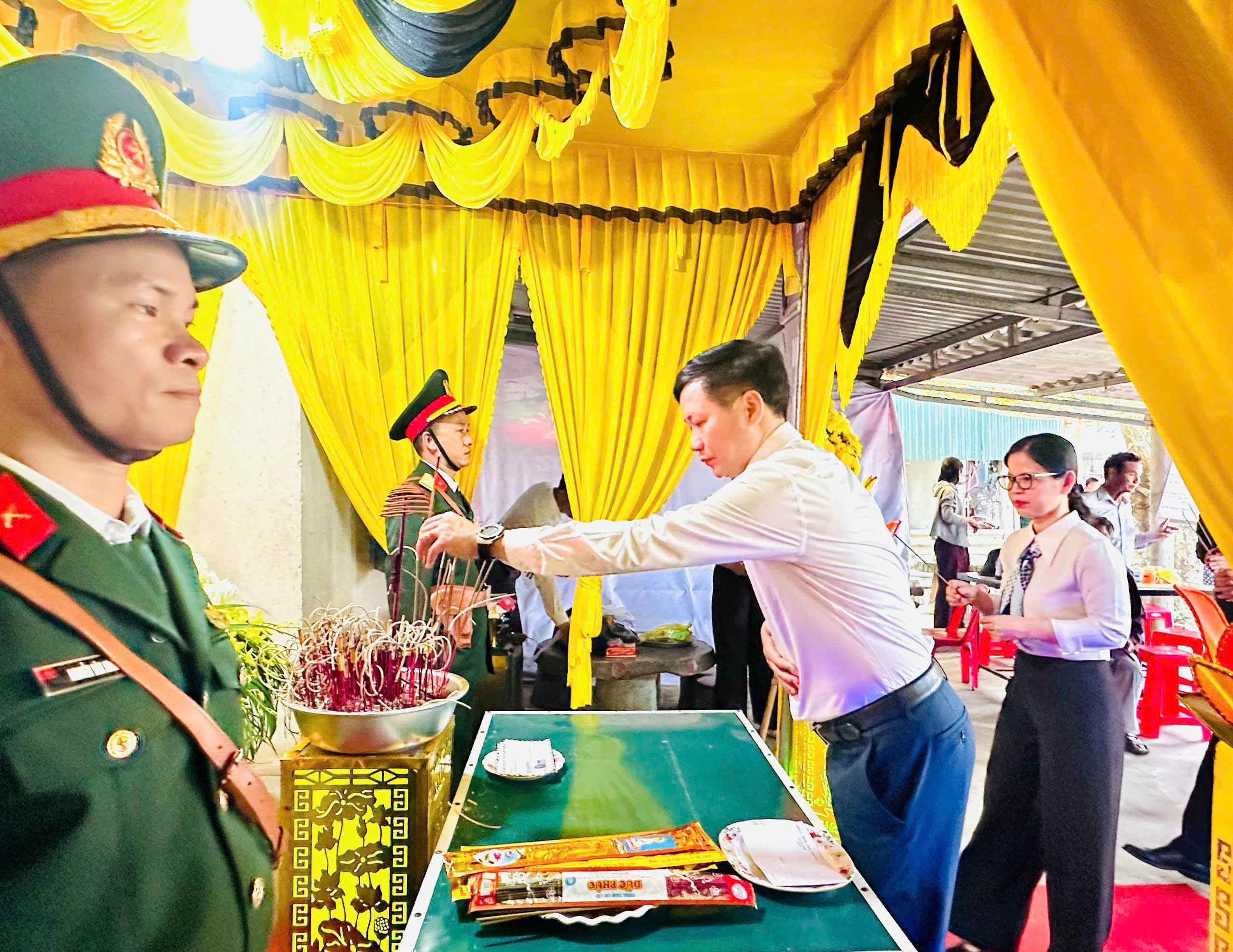 Lễ đón nhận hài cốt liệt sĩ Nguyễn Công Tuân được tổ chức trang nghiêm.