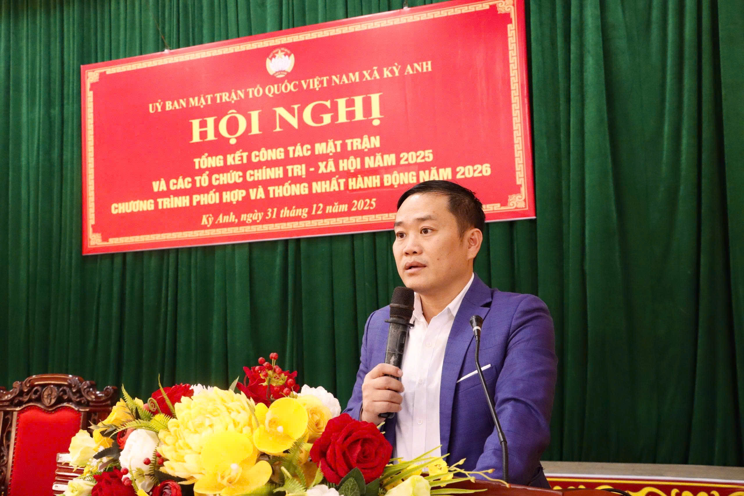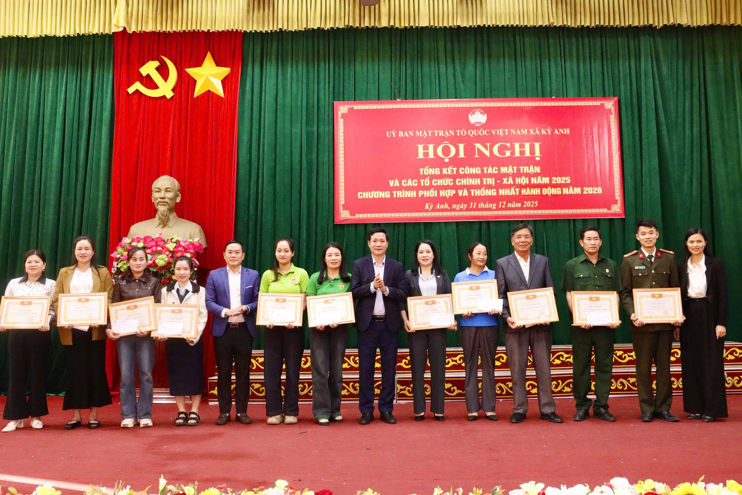 Năm 2025, MTTQ xã Kỳ Anh tổ chức thành công Đại hội đại biểu MTTQ xã và các tổ chức chính trị - xã hội nhiệm kỳ 2025 – 2030 và kiện toàn bộ máy các hội xã hội sau khi sáp nhập. Trong năm, MTTQ xã đã phát huy vai trò nòng cốt, tổ chức 60 lớp tuyên truyền, ban hành 105 văn bản hướng dẫn triển khai các chủ trương của Đảng và chính sách Nhà nước đến nhân dân.