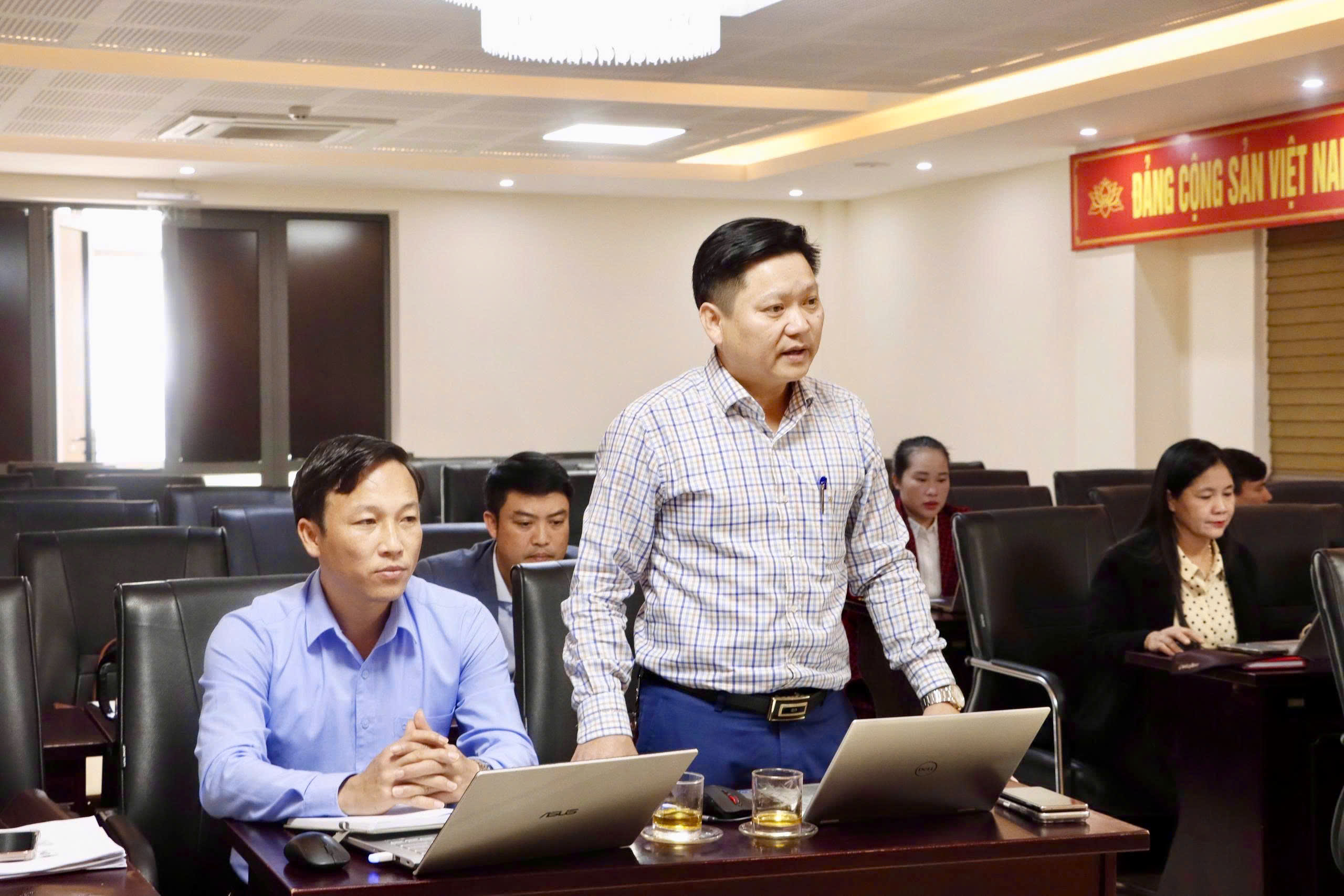 Đồng chí Võ Xuân Thành, Phó Chủ tịch UBND xã phát biểu tại Hội nghị