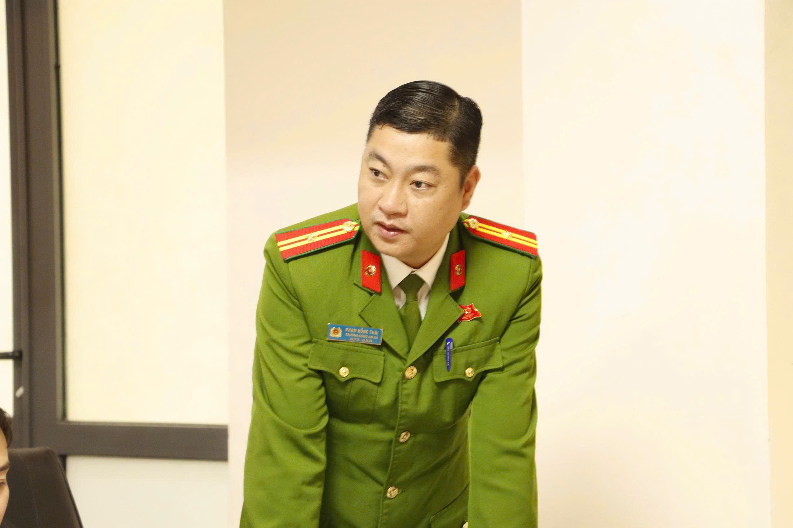 Đổng chí Phạm Hồng Thái, Trưởng Công An xã Kỳ Anh phát biểu tại Hội nghị